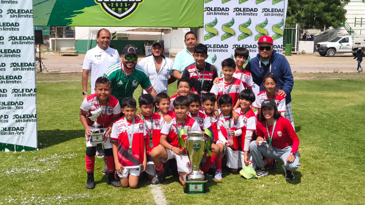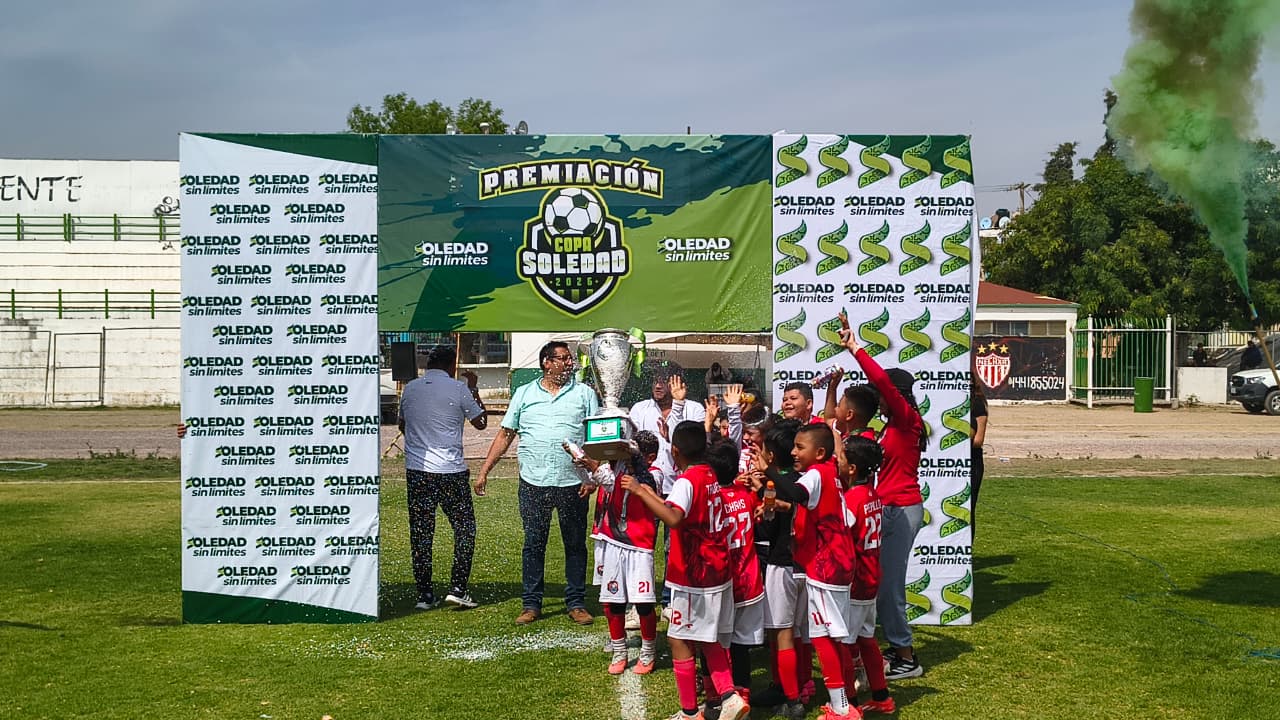 Tras una semana de alta competencia, las escuadras de Peñarol FC en la categoría 16-17 y Cefor Nido Aguila en la categoría 14-15, se proclamaron campeones de la Copa Soledad Infantil 2026, cotejos que se efectuaron en el campo 1 de la Unidad Deportiva “21 de Marzo” de la colonia San Antonio en Soledad de Graciano Sánchez, en el marco de las actividades deportivas de la Feria Nacional de la Enchilada 2026.