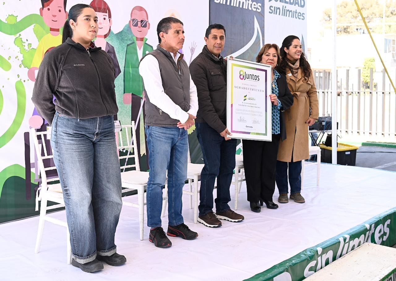 Como parte del acto, la asociación Juntos AC entregó un reconocimiento al Ayuntamiento de Soledad de Graciano Sánchez por el acompañamiento y compromiso mostrado en la construcción de un municipio incluyente; con este respaldo, la Administración Municipal reiteró que estas acciones continuarán de manera permanente, con el objetivo de escuchar, atender y generar más oportunidades que acerquen a las y los soledenses a una vida laboral plena y accesible.