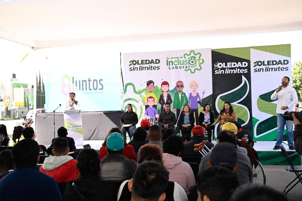 La explanada del Teatro “Doroteo Arango” reunió este viernes a decenas de buscadores y buscadoras de empleo durante la Segunda Feria de Inclusión Laboral para Personas con Discapacidad, donde 20 empresas ofrecieron más de 200 vacantes en distintos perfiles, como parte del compromiso permanente del Ayuntamiento de Soledad de Graciano Sánchez de acercar oportunidades reales a quienes más lo necesitan, y del fortalecimiento de la cercanía con las familias y los sectores que históricamente enfrentan barreras laborales.