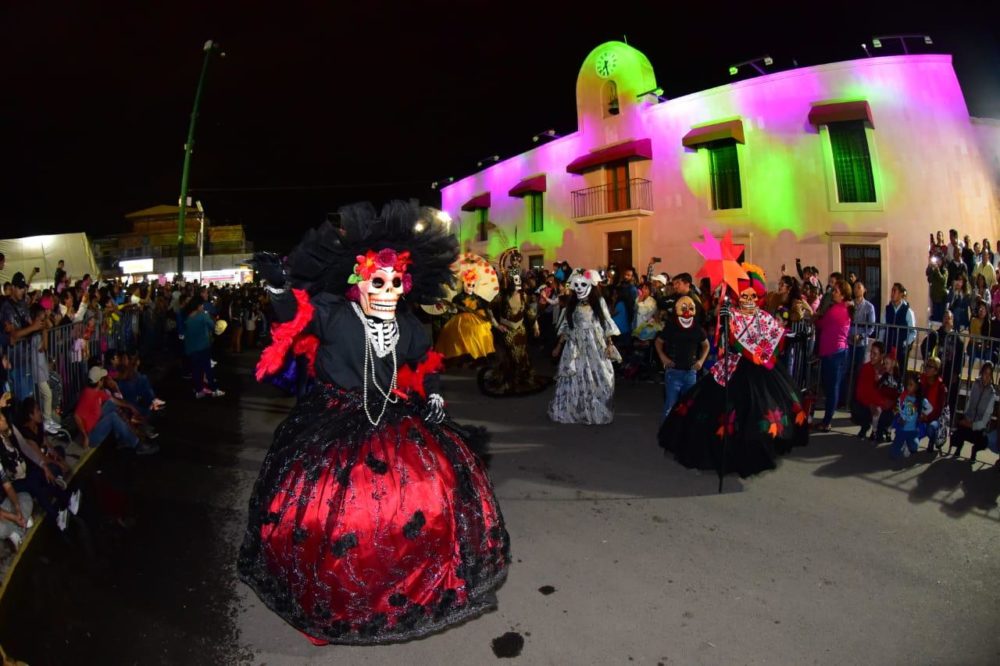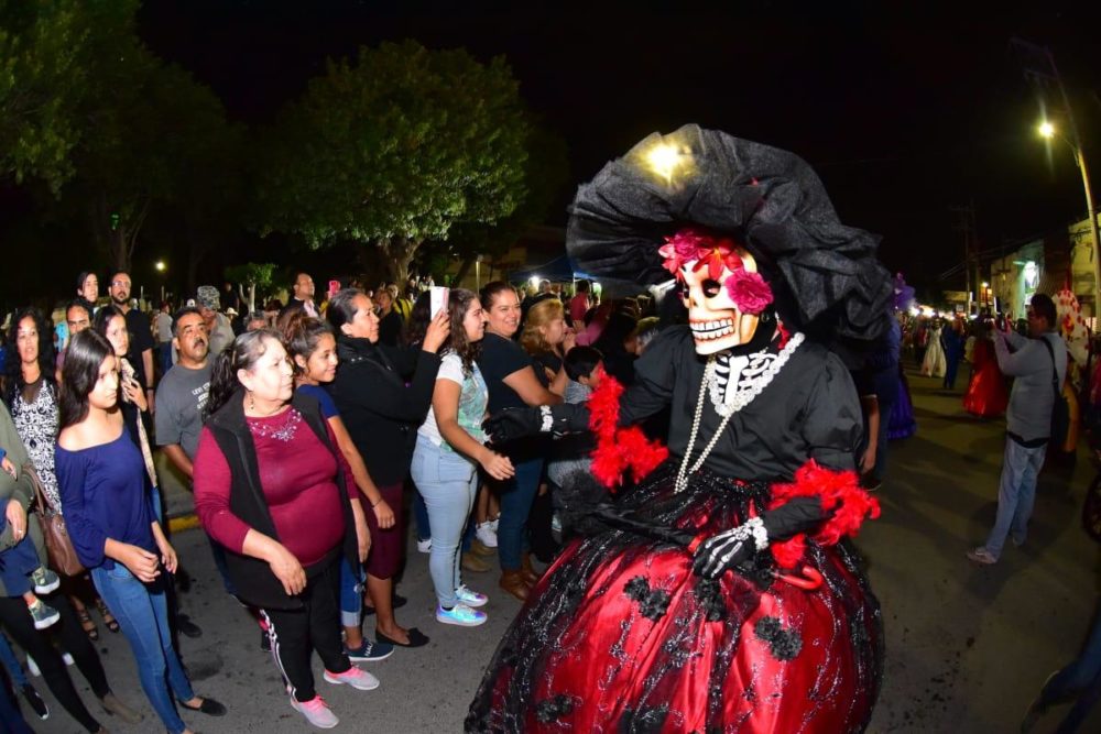 Cientos de personas se congregaron en las calles para observar el paso del contingente ambientado por música tradicional, trompetas y tambores; sobresalieron enormes figuras de catrinas de cartonería y en los carros alegóricos que partieron de la colonia San Felipe, los personajes de la película Coco, inspirada en nuestra festividad mexicana del Día de Muertos, fue uno de los que captaron la atención de chicos y grandes.