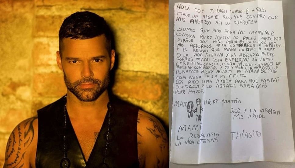 Thiago, un pequeño de 8 años de edad, originario de la ciudad de Córdoba en Argentina, ha causado gran consternación y ternura, en redes sociales, pues busca que su madre, quien padece cáncer, conozca al cantante Ricky Martin y lo pueda abrazar.