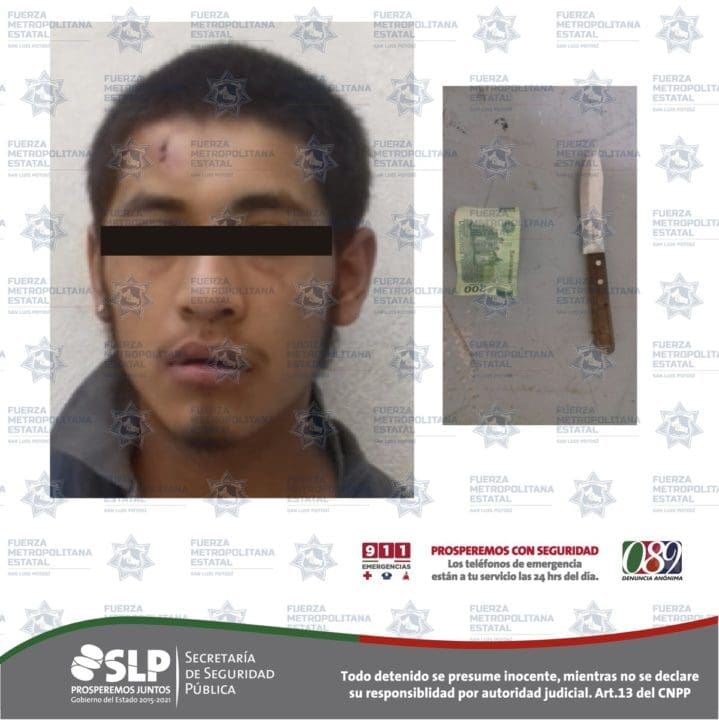 Gracias a un llamado de auxilio, Policías Metropolitanos efectuaron la detención de una persona del sexo masculino, por el presunto delito de robo a comercio.