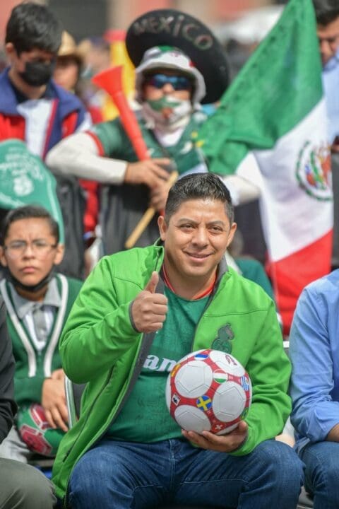 Junto a cientos de aficionados y aficionadas, jóvenes estudiantes y con un ambiente de sana convivencia y júbilo, el Gobernador de San Luis Potosí Ricardo