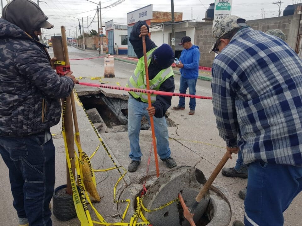 Tras las primeras labores de supervisión técnica, se confirmó que el hecho fue provocado por un presunto rompimiento de tubería de drenaje, ocasionando un deslave prolongado de material subterráneo que daba soporte, por lo cual se está en espera de las valoraciones del organismo intermunicipal, toda vez que se requiere de una intervención previa y especializada.