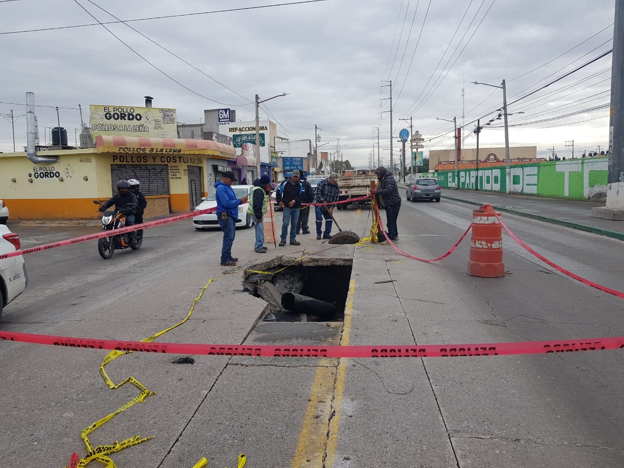 Tras las primeras labores de supervisión técnica, se confirmó que el hecho fue provocado por un presunto rompimiento de tubería de drenaje, ocasionando un deslave prolongado de material subterráneo que daba soporte, por lo cual se está en espera de las valoraciones del organismo intermunicipal, toda vez que se requiere de una intervención previa y especializada.