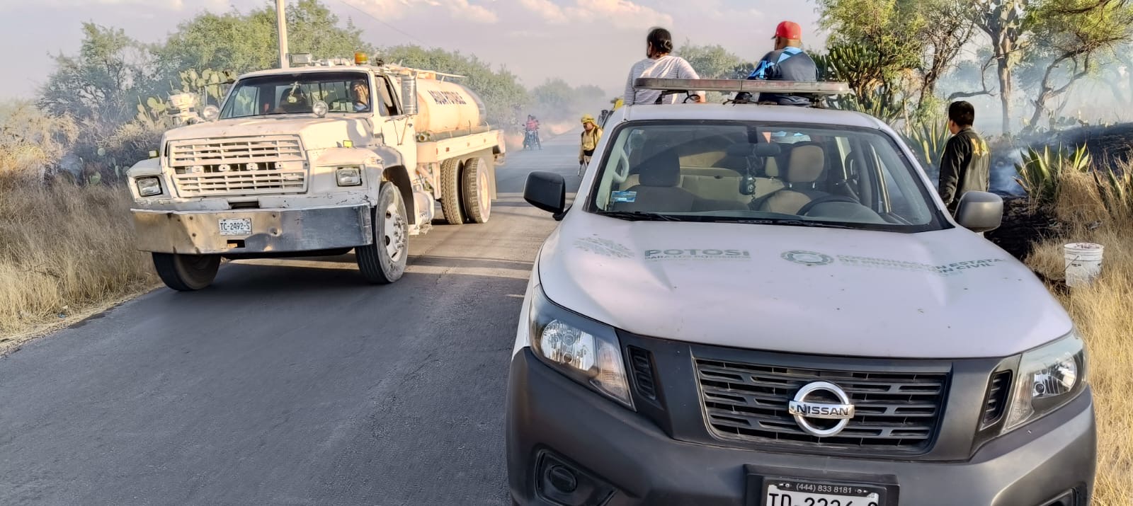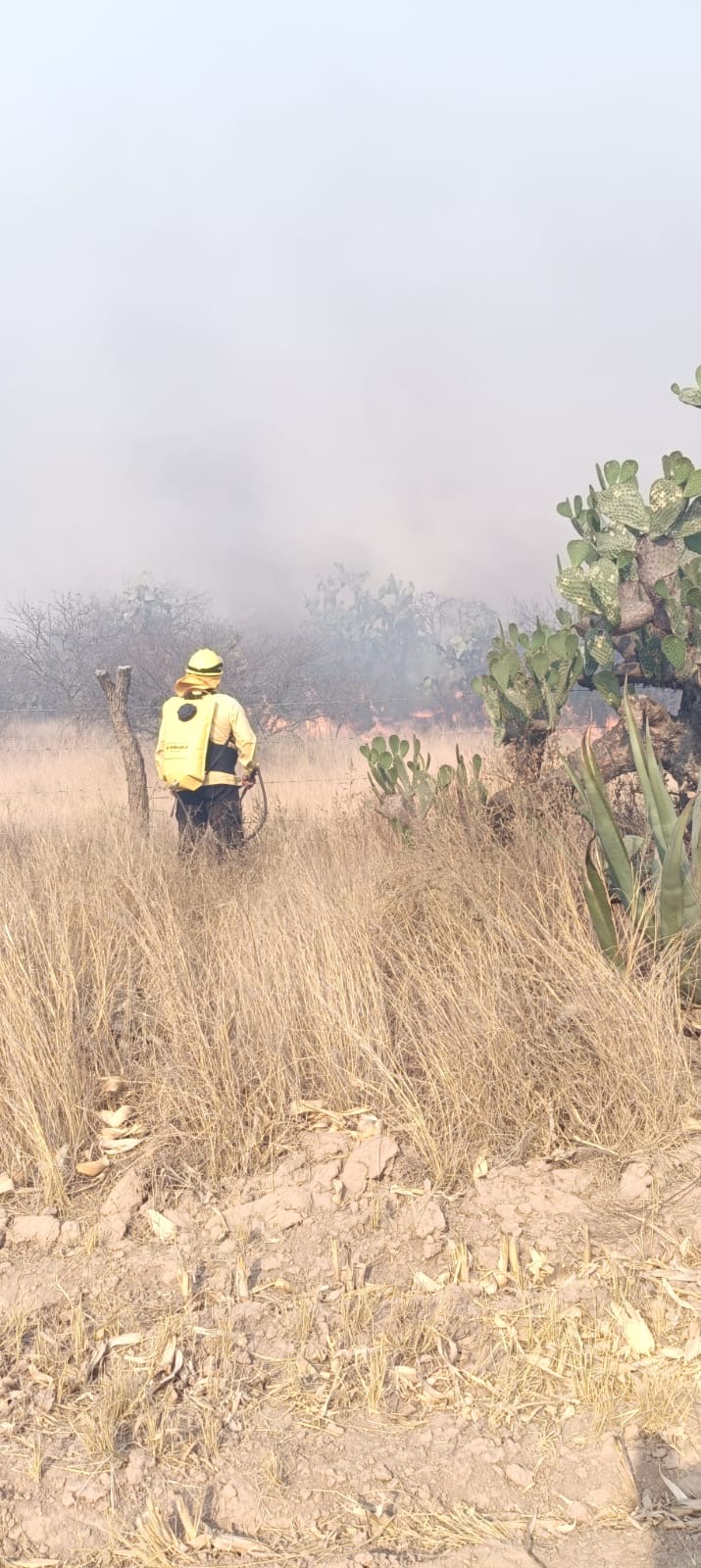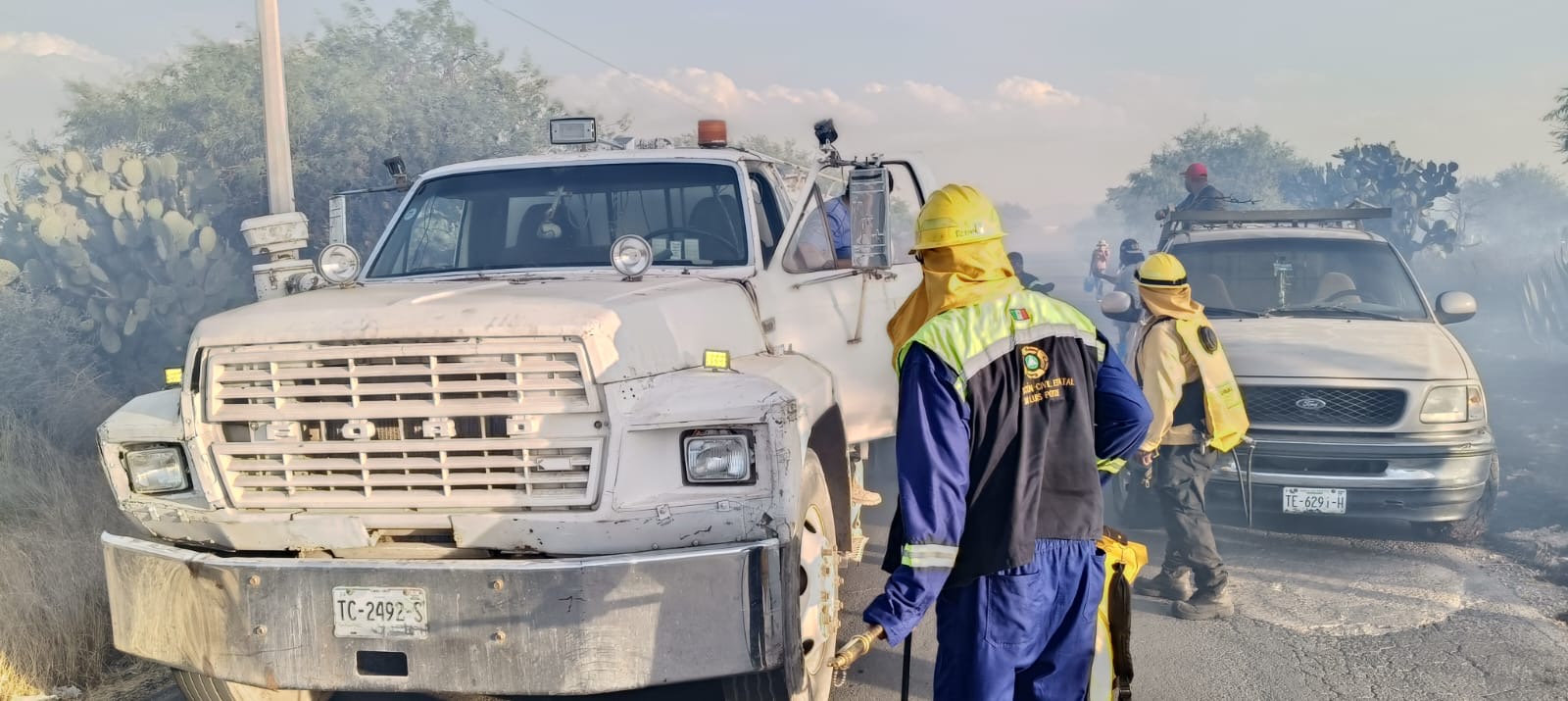 La Coordinación Estatal de Protección Civil (CEPC) informa que, en coordinación con la Comisión Nacional Forestal (CONAFOR), el H. Cuerpo de Bomberos, Protección Civil Municipal de Mexquitic de Carmona y personas voluntarias se combate un incendio de pastizal registrado en la comunidad de Ojo Pinto, en dicho municipio.
