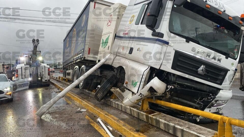 La Secretaría de Seguridad y Protección Ciudadana del Estado, informa que esta mañana tomó conocimiento de un hecho de tránsito terrestre protagonizado por el chofer de un tráiler que chocó contra un objeto fijo en Circuito Potosí a la altura del puente vehicular de avenida Juárez.