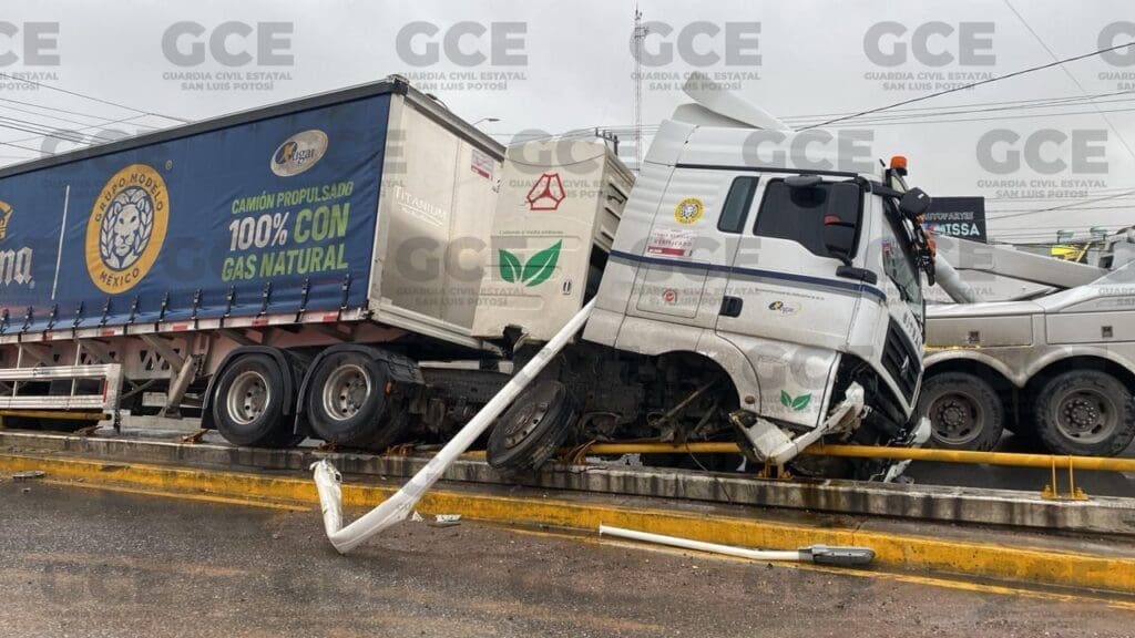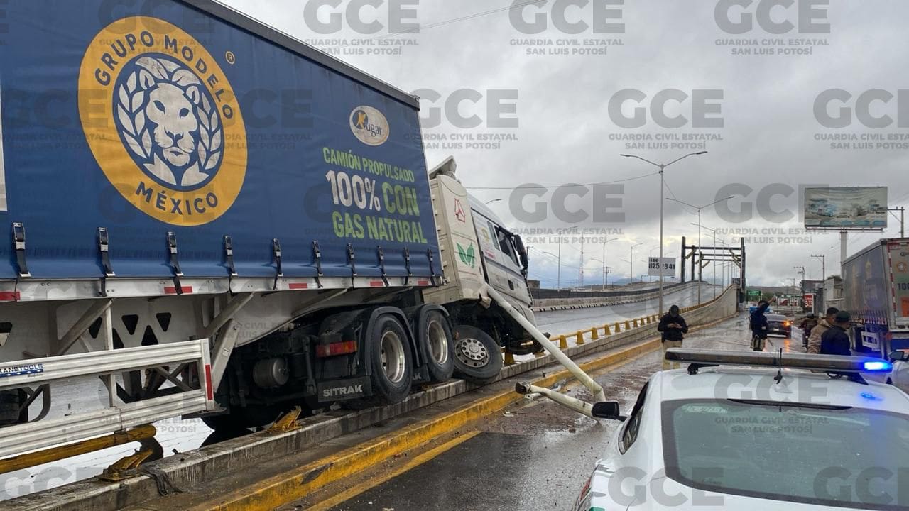 La Secretaría de Seguridad y Protección Ciudadana del Estado, informa que esta mañana tomó conocimiento de un hecho de tránsito terrestre protagonizado por el chofer de un tráiler que chocó contra un objeto fijo en Circuito Potosí a la altura del puente vehicular de avenida Juárez.