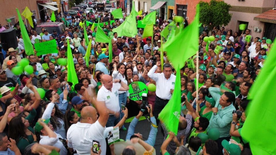 Entre porras y el respaldo de una multitud, Navarro Muñiz registró formalmente su candidatura a la presidencia municipal de Soledad de Graciano Sánchez por el Partido Verde.