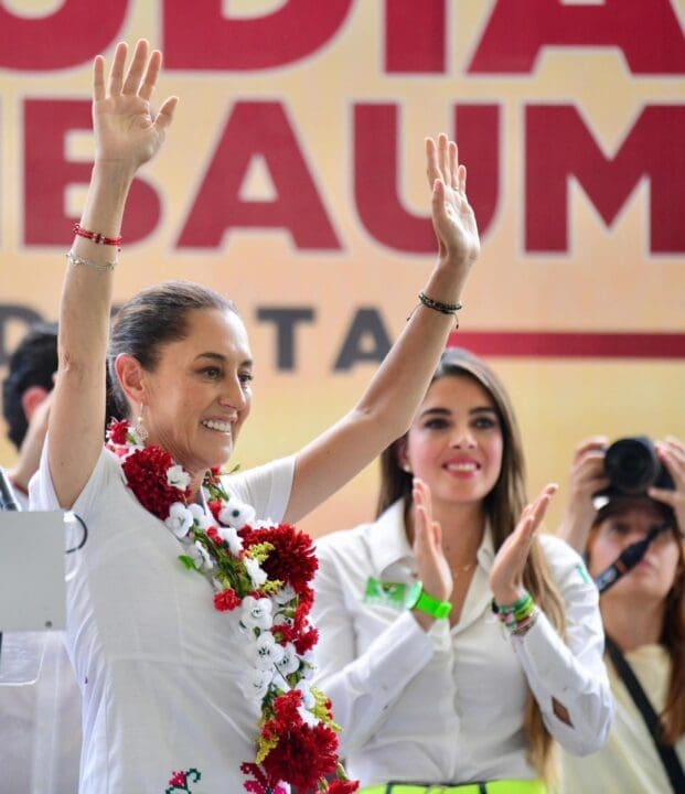 Entre tonalidades intensas de rojo, amarillo, verde y rosa, colores de la Huasteca potosina y de las prendas de gala de los tének y náhuatls, Claudia Sheinbaum y Ruth González fueron recibidas por los habitantes del “lugar de la mujer gobernadora”, significado en náhuatl de Tamazunchale, donde dirigentes de las comunidades indígenas entregaron a Sheinbaum Pardo el bastón de mando que simboliza la confianza que los pueblos originarios ponen en la candidata y el compromiso de convertirla en la primera presidenta de México.