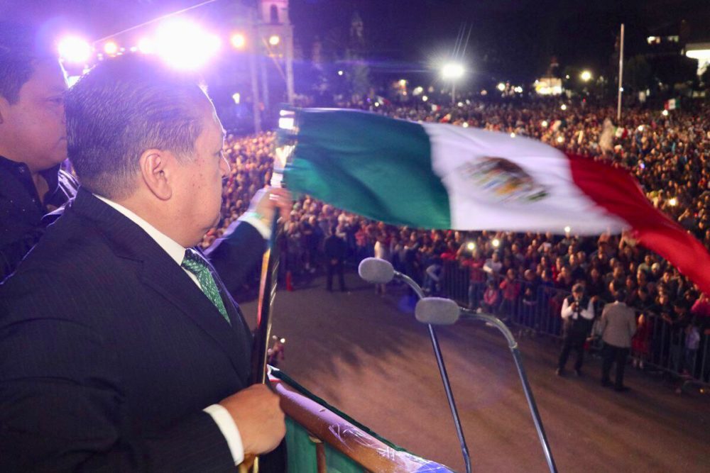 Ante una ovación, alegría y entusiasmo de los miles de asistentes, el Ingeniero Hernández Villafuerte arengó con ¡Vivas! a cada uno de los héroes de México y repicó la campana emulando al cura Don Miguel Hidalgo y Costilla.