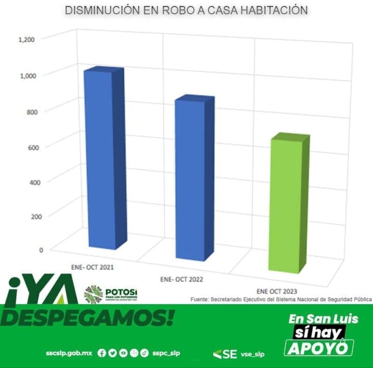 A dos meses de concluir el 2023, el Estado de San Luis Potosí registró una disminución importante en las cifras de incidencia delictiva, donde se aprecia que algunos delitos descendieron o se mantienen con un 50 por ciento menos que los resultados obtenidos en el periodo de enero a octubre del 2021, informó el vocero del Seguridad del Estado, Miguel Gallegos Cepeda.