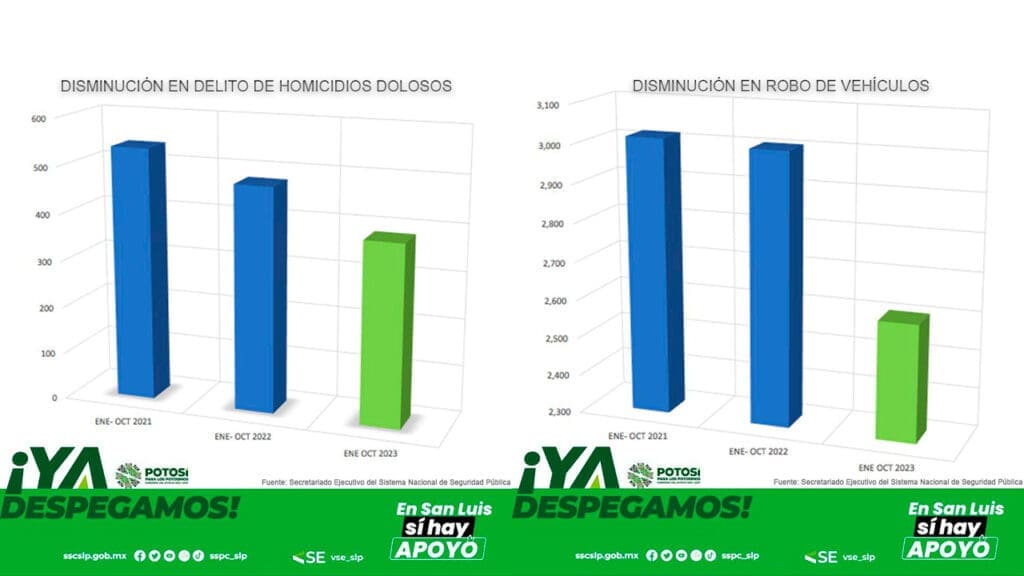 A dos meses de concluir el 2023, el Estado de San Luis Potosí registró una disminución importante en las cifras de incidencia delictiva, donde se aprecia que algunos delitos descendieron o se mantienen con un 50 por ciento menos que los resultados obtenidos en el periodo de enero a octubre del 2021, informó el vocero del Seguridad del Estado, Miguel Gallegos Cepeda.