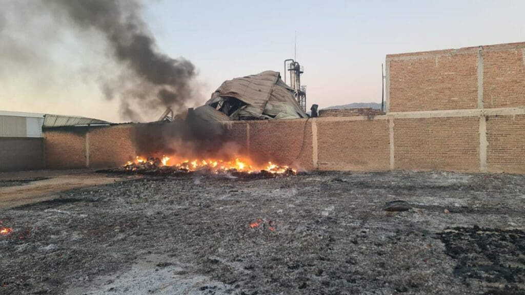 Se acudió al reporte ciudadano de un incendio en una empresa de solventes ubicada en el Eje 132, que fue sofocado a las 7:00 de la mañana.