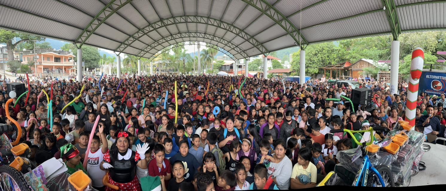 • En representación del Gobernador Ricardo Gallardo, la presidenta honoraria del Sistema Estatal para el Desarrollo Integral de la Familia (DIF), Ruth González, compartió la magia de la navidad con familias de Tampamolón, Tancanhuitz y Huehuetlán.