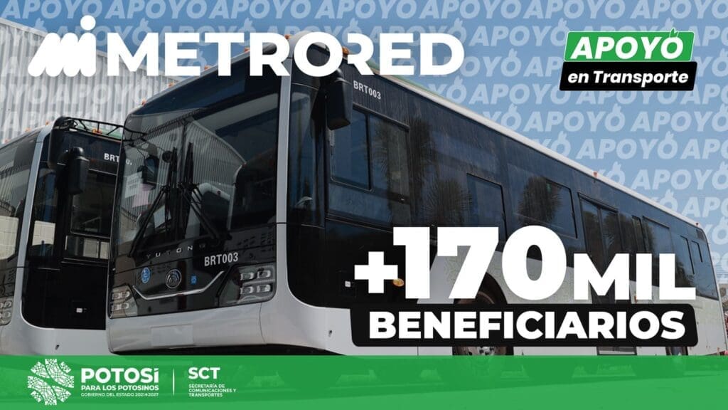 San Luis Potosí ya despegó hacia una mejor movilidad al brindar un transporte de alta calidad a las y los potosinos, con la puesta en operación del nuevo sistema MetroRed, que durante el primer mes de servicio, ha beneficiado a 171 mil 626 potosinas y potosinos, quienes ahora se trasladan de manera ágil, segura y cómoda a sus centros de trabajo y estudio, informó la Secretaría de Comunicaciones y Transportes (SCT).