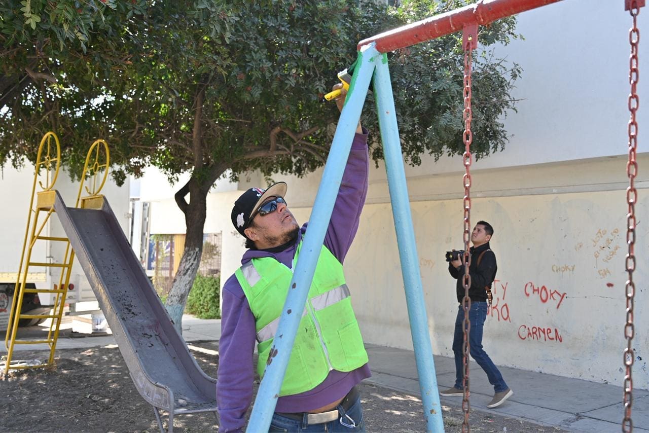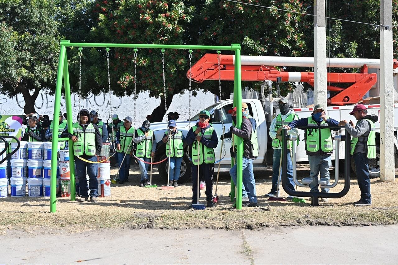 La intervención no se limitó a la limpieza superficial. Equipos operativos desplegaron acciones de bacheo, modernización del alumbrado público, desazolve de drenajes y la recuperación total de parques mediante la instalación de juegos infantiles.