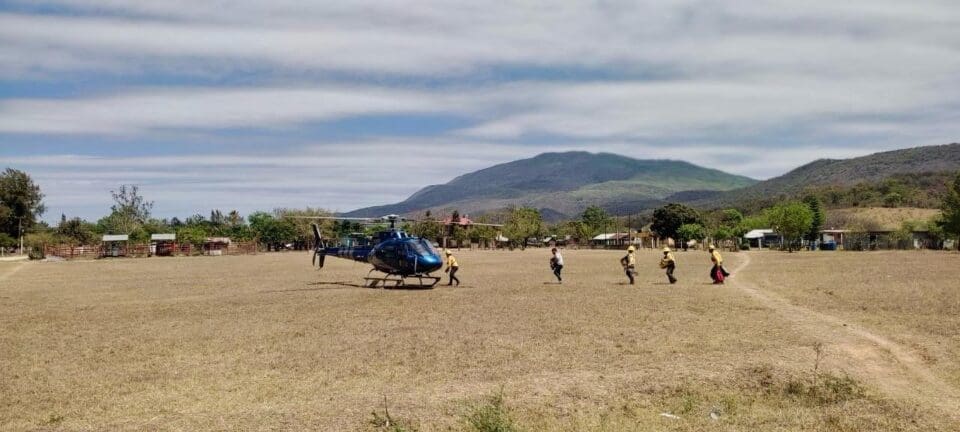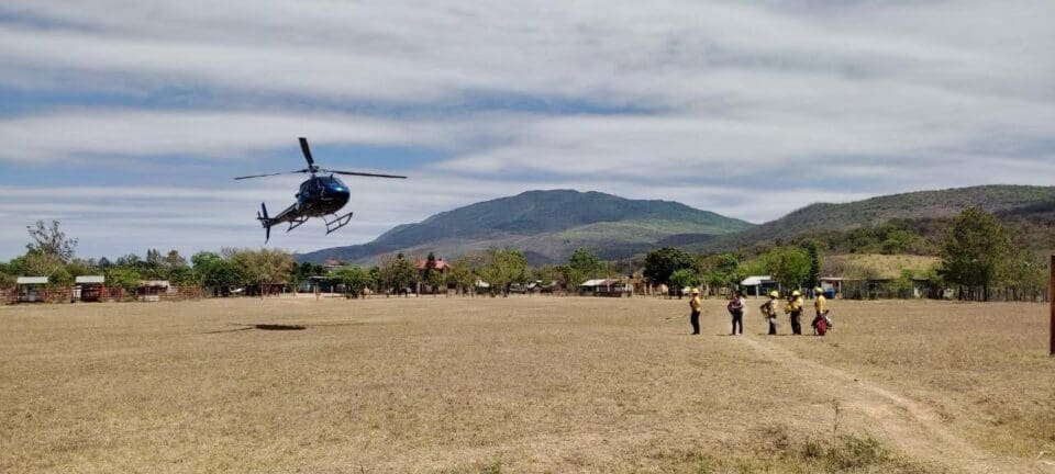 La dependencia informó que gracias a que el helicóptero cuenta con un Bambi Bucket, es decir, un balde para transportar el agua y combatir el fuego, también podrá trasladar a las y los 28 brigadistas a zonas de difícil acceso. Hace unos también se sumó a los trabajos de combate de este incendio la aeronave Bell 212, con la que se pudo trabajar en áreas de difícil acceso.