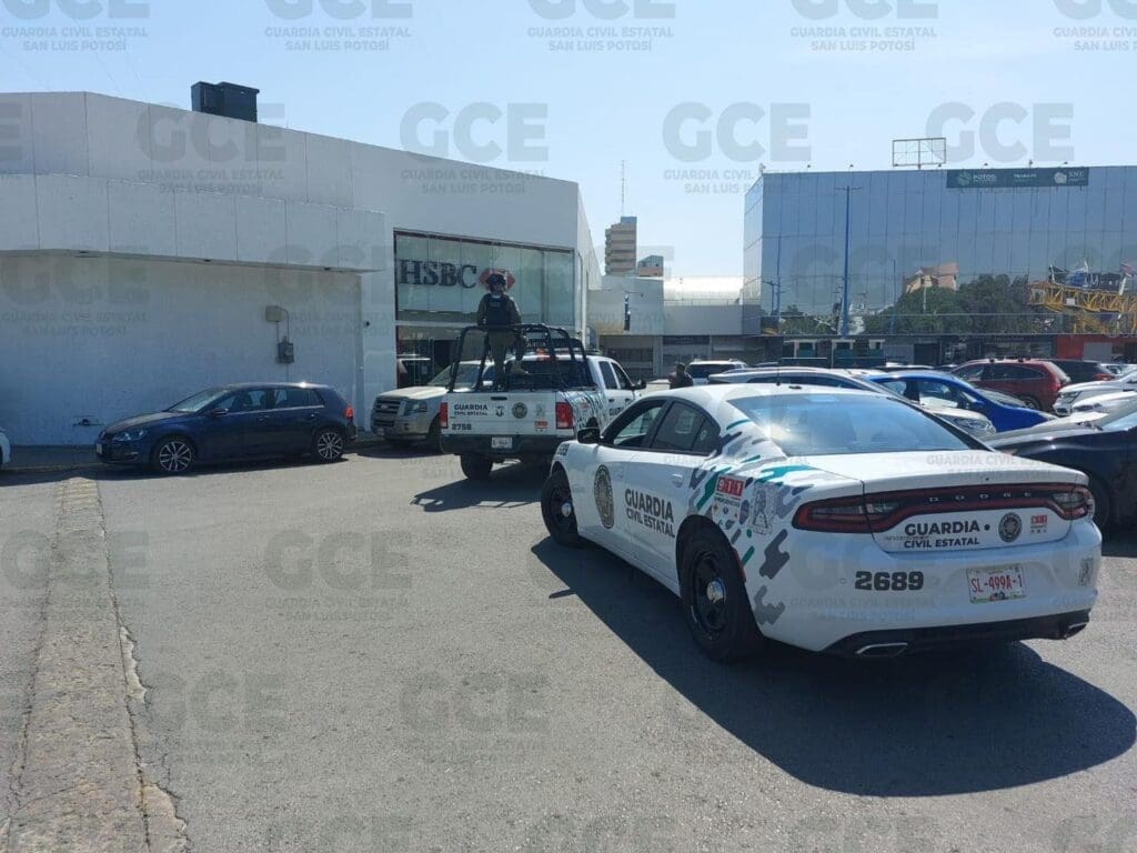 Según el informe, se recibió una falsa denuncia de robo en curso en la sucursal «HSBC» ubicada en Plaza Tangamanga, lo que generó una respuesta inmediata por parte del personal operativo de la Guardia Civil Estatal.