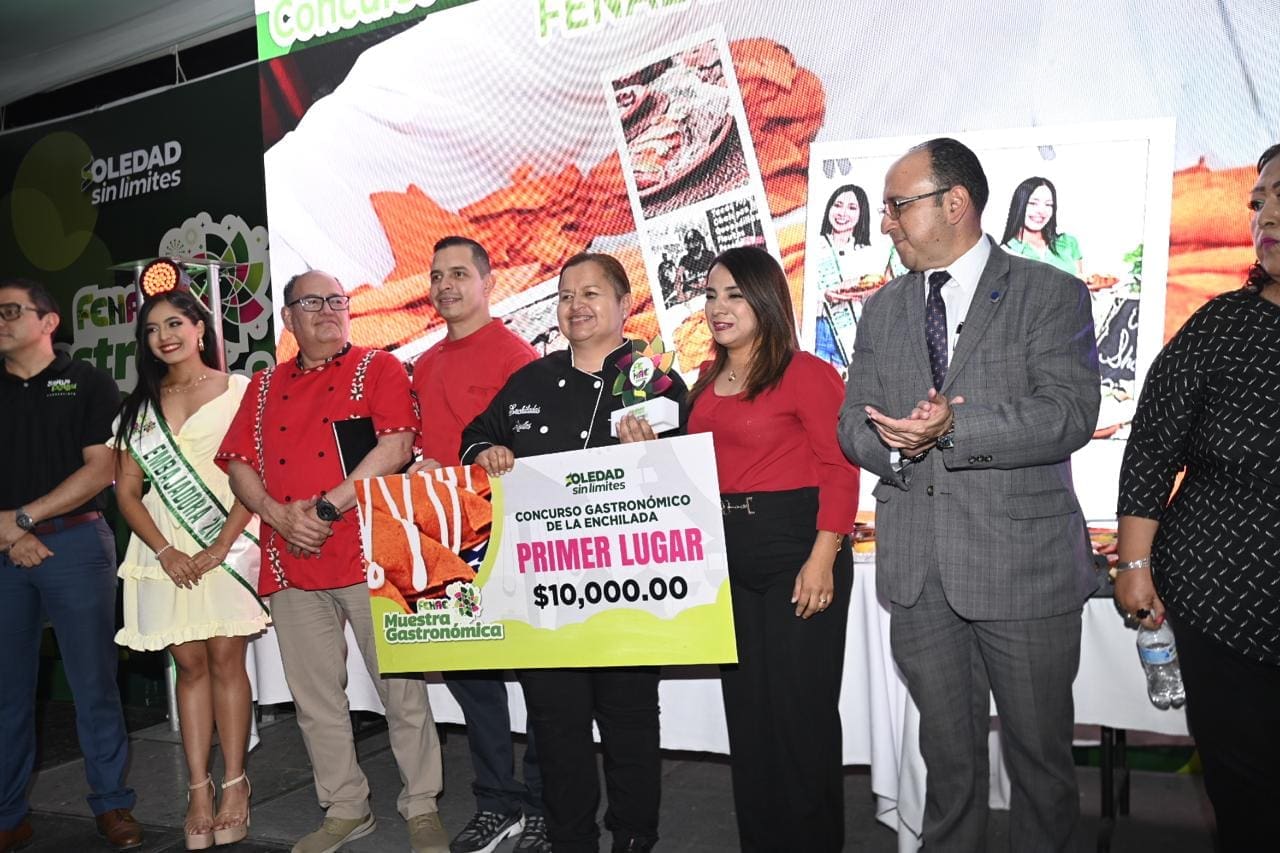 Durante la ceremonia, Felipe Cárdenas Quibrera, Director de Cultura y Turismo municipal, destacó que la enchilada hoy es el símbolo que otorga identidad a Soledad ante el mundo. «A nombre del Alcalde Juan Manuel Navarro Muñiz, reiteramos nuestro respaldo total a las y los integrantes de la muestra gastronómica, esta premiación es un reconocimiento a su esfuerzo por mantener viva nuestra esencia», señaló el funcionario.