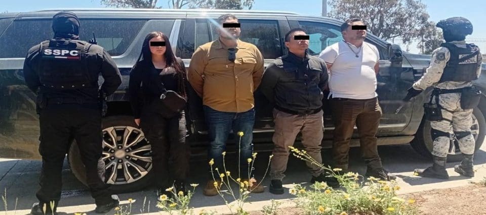 En Baja California, elementos de GN y Aduanas detuvieron a siete personas, tres de ellos de nacionalidad estadounidense, les aseguraron un arma larga, diversas dosis de droga y dos vehículos, uno de ellos con reporte de robo en Estados Unidos