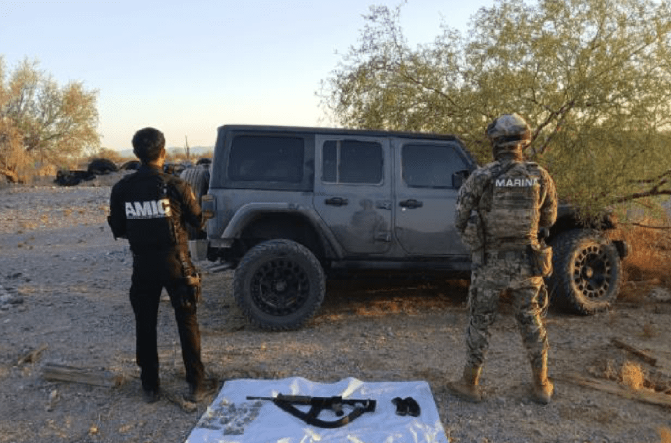 -En Puerto San Carlos, elementos de la Secretaría de Seguridad Pública de Comondú, Secretaría de Marina (Semar) y Policía Municipal aseguraron tres vehículos, cuatro armas largas y dos armas cortas.