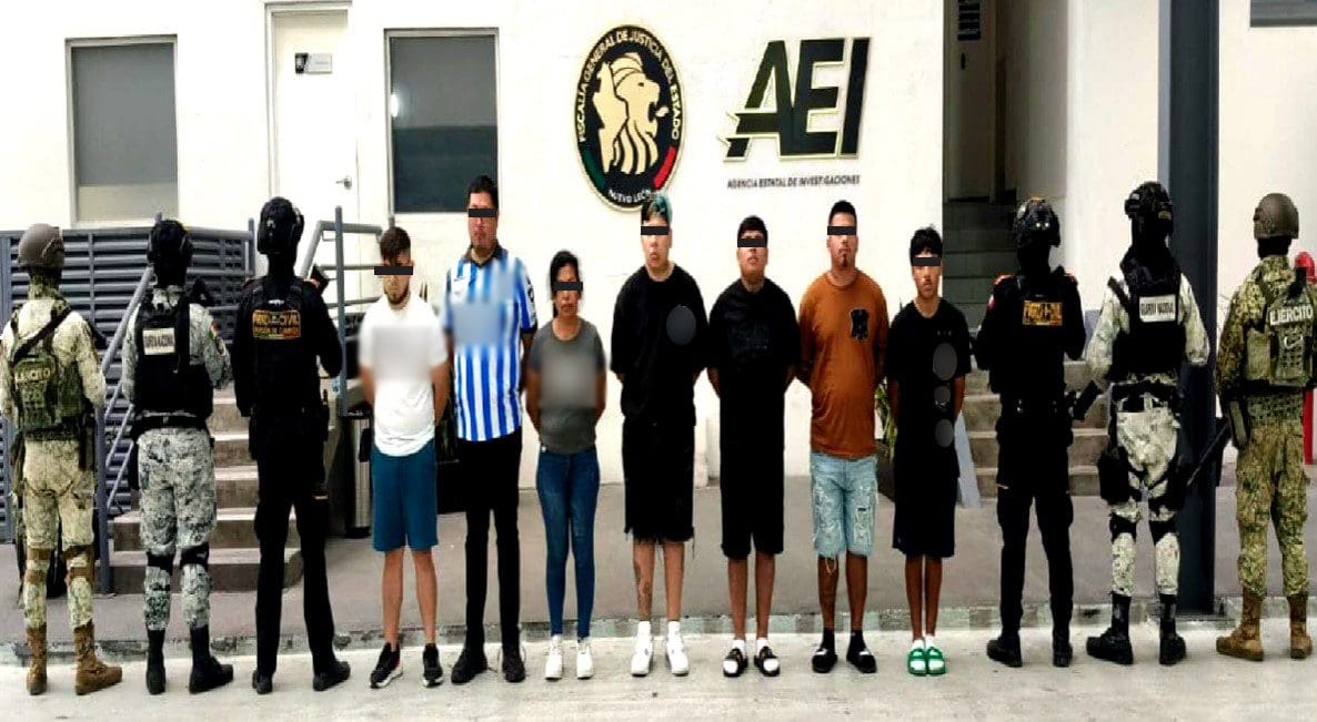 En Santa Catarina, se detuvo a ocho personas, se aseguraron 91 dosis de metanfetamina, 87 dosis de cocaína, dinero en efectivo, un teléfono celular y seis basculas grameras.