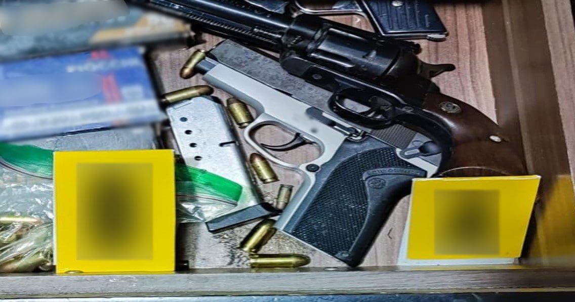 Se detuvo a cuatro personas, se aseguraron dos armas de fuego, cuatro cargadores, 51 cartuchos, 45 dosis de metanfetamina, siete dosis de marihuana y dos vehículos.