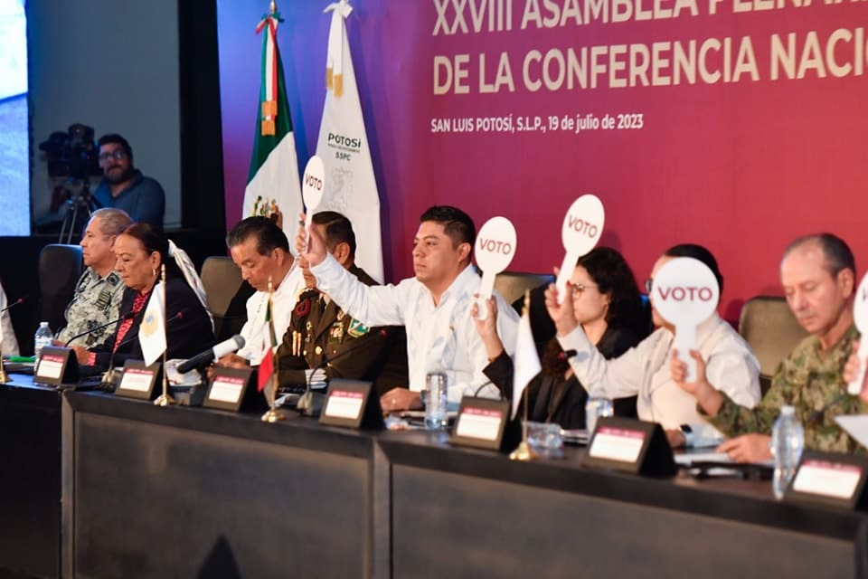 El Gobernador de San Luis Potosí Ricardo Gallardo Cardona, encabezó este miércoles la XXVIII Asamblea Plenaria Nacional de Secretarios de Seguridad celebrada en la Entidad potosina, donde ratificó el compromiso y apoyo del Gobierno Estatal en la prevención y combate de los delitos, a fin de fortalecer las políticas públicas de seguridad en el país.