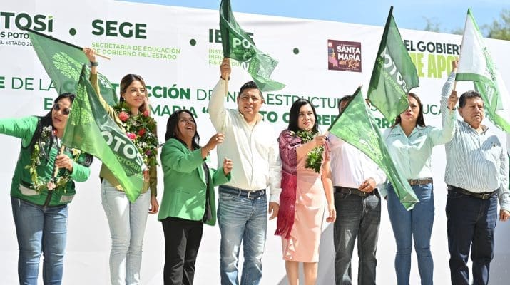 En Tierra Nueva entregó equipo y mobiliario escolar; en la capital rehabilitó la primaria “Hombres del Mañana”; en Santa María del Río renovó la escuela “Alberto Carrera Torres”; y en Villa de Arriaga se construye un nuevo plantel del Colegio de Bachilleres.