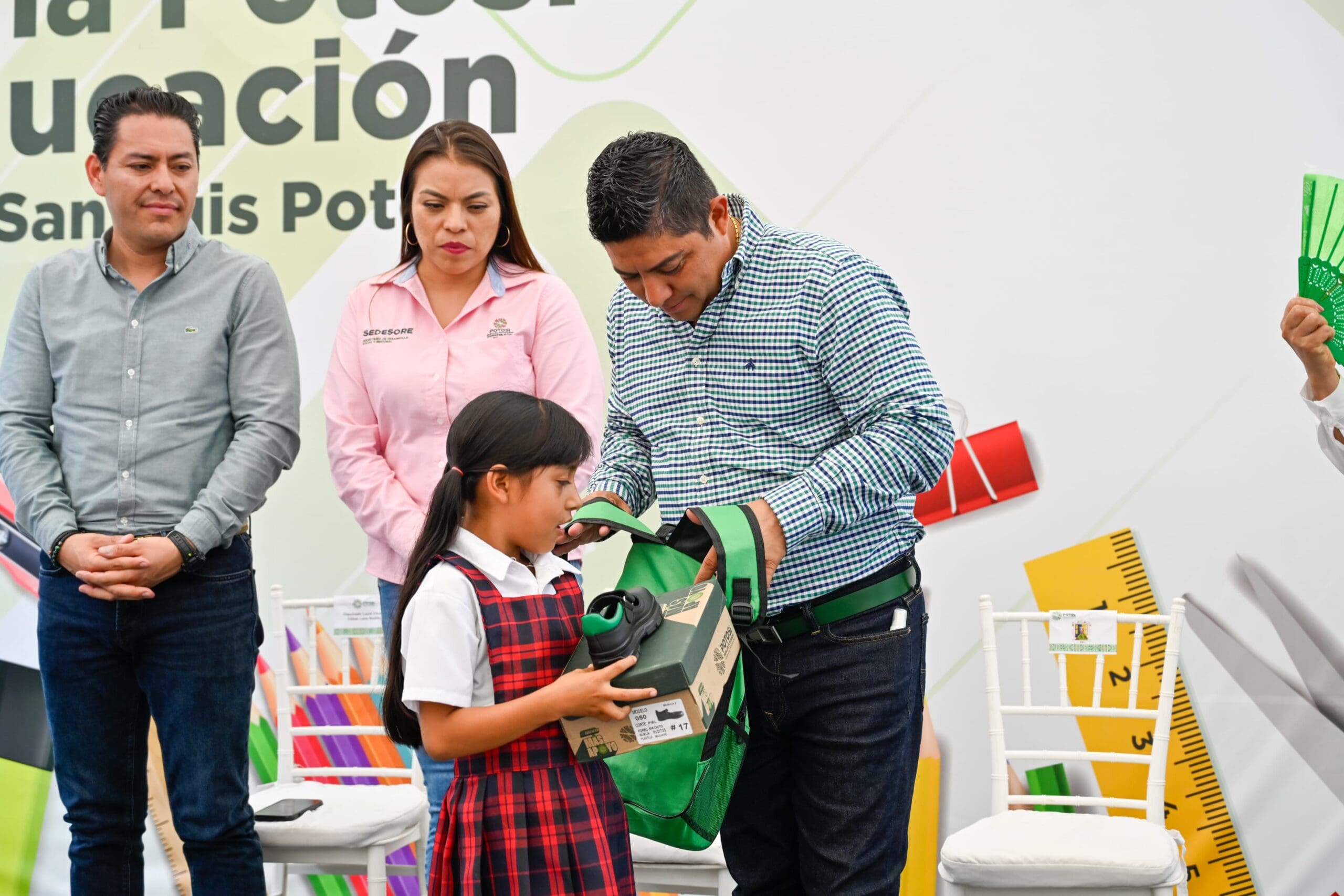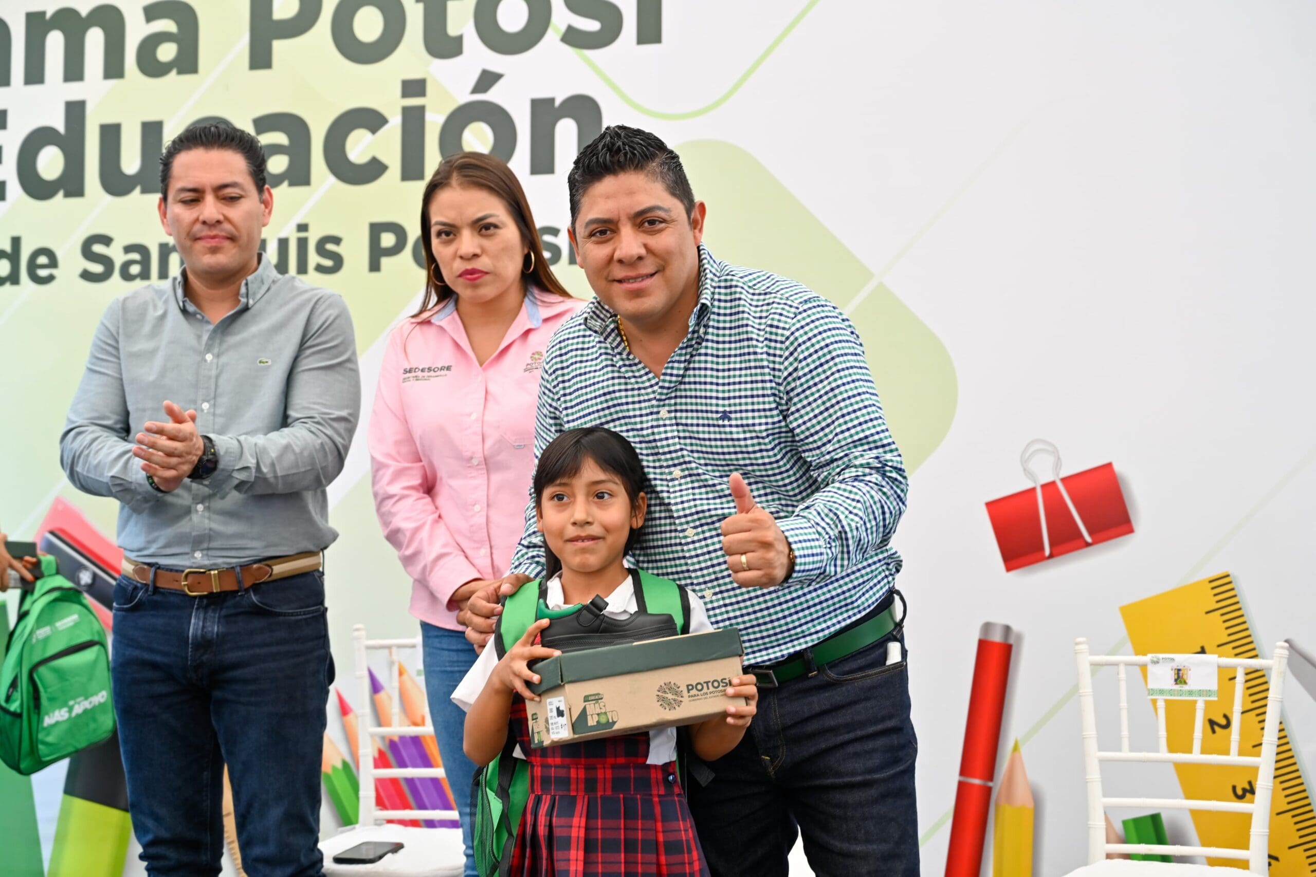 Para brindar más apoyo a niñas, niños y jóvenes de las cuatro regiones para que continúen con sus estudios, el Gobernador de San Luis Potosí Ricardo Gallardo Cardona, entregó a tres mil 688 alumnas y alumnos de Zaragoza, paquetes de útiles, zapatos y mochilas, como parte del programa Potosí para la Educación que los equipa para este regreso a clases.