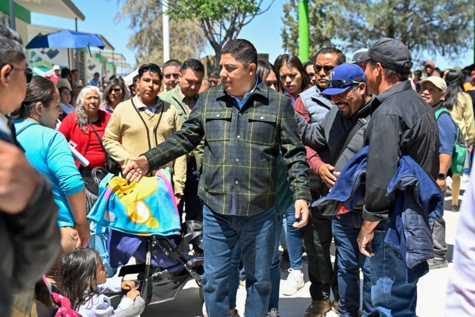 Por la mañana, en un ambiente de fiesta, acompañado de madres y padres de familia de Cedral, el Gobernador inauguró la rehabilitación integral de la primaria y entregó pólizas de seguro para atender cualquier eventualidad de los alumnos al interior del plantel.