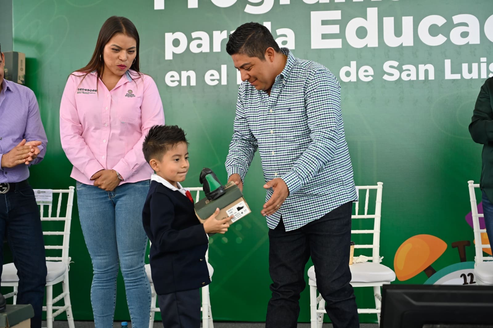 Rodeado del agradecimiento de estudiantes, madres y padres de familia, así como docentes, el Mandatario potosino resaltó que el objetivo de este programa es fomentar el esfuerzo y la dedicación de quienes cursan algún grado de educación básica, así como disminuir la deserción escolar y el rezago educativo en las cuatro regiones del Estado, aunque también repercute en un ahorro importante para la familia que ya no tiene que gastar en útiles escolares.