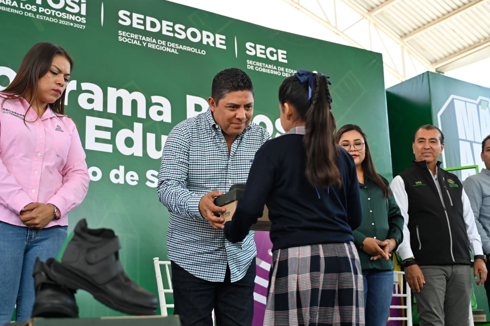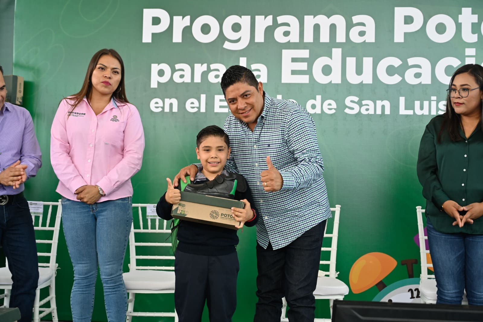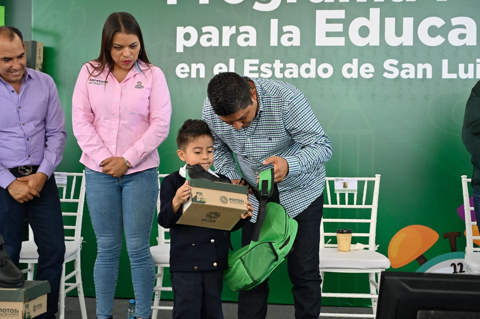 Para brindar más apoyo a las familias, generar un ahorro en sus gastos por el arranque de clases y motivar a las niñas, niños y jóvenes para continuar sus estudios, este jueves, el Gobernador de San Luis Potosí, Ricardo Gallardo Cardona, continuó con la entrega de mochilas, útiles y zapatos escolares del programa Potosí para la Educación, en el municipio de Santa María del Río, donde más de cinco mil alumnas y alumnos resultaron beneficiados.