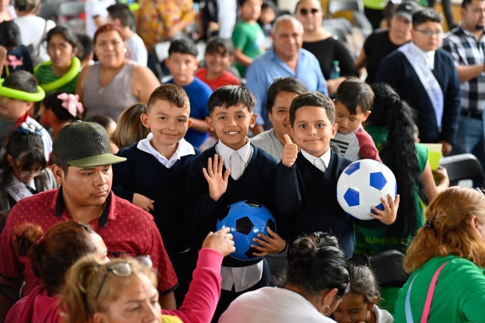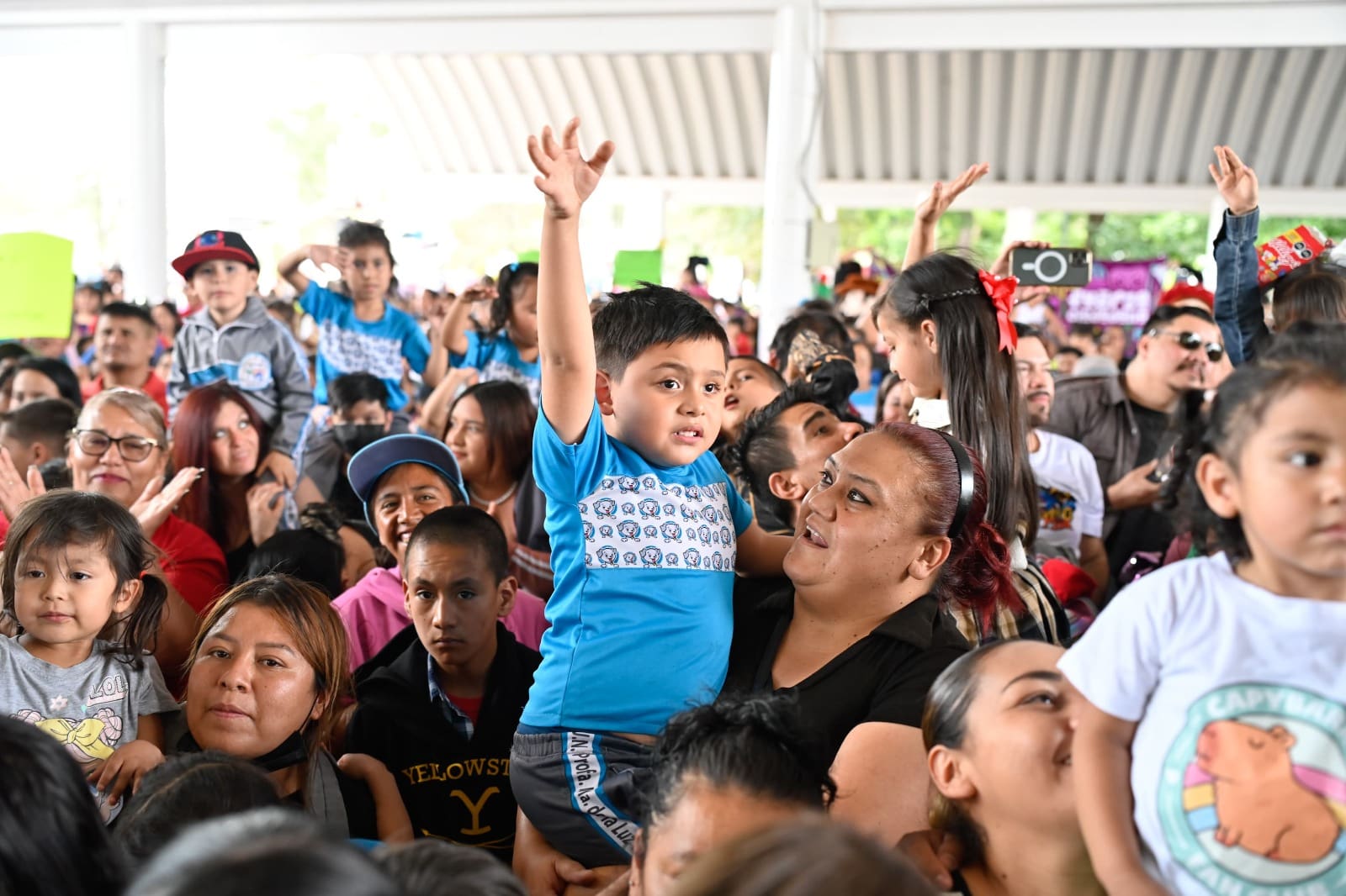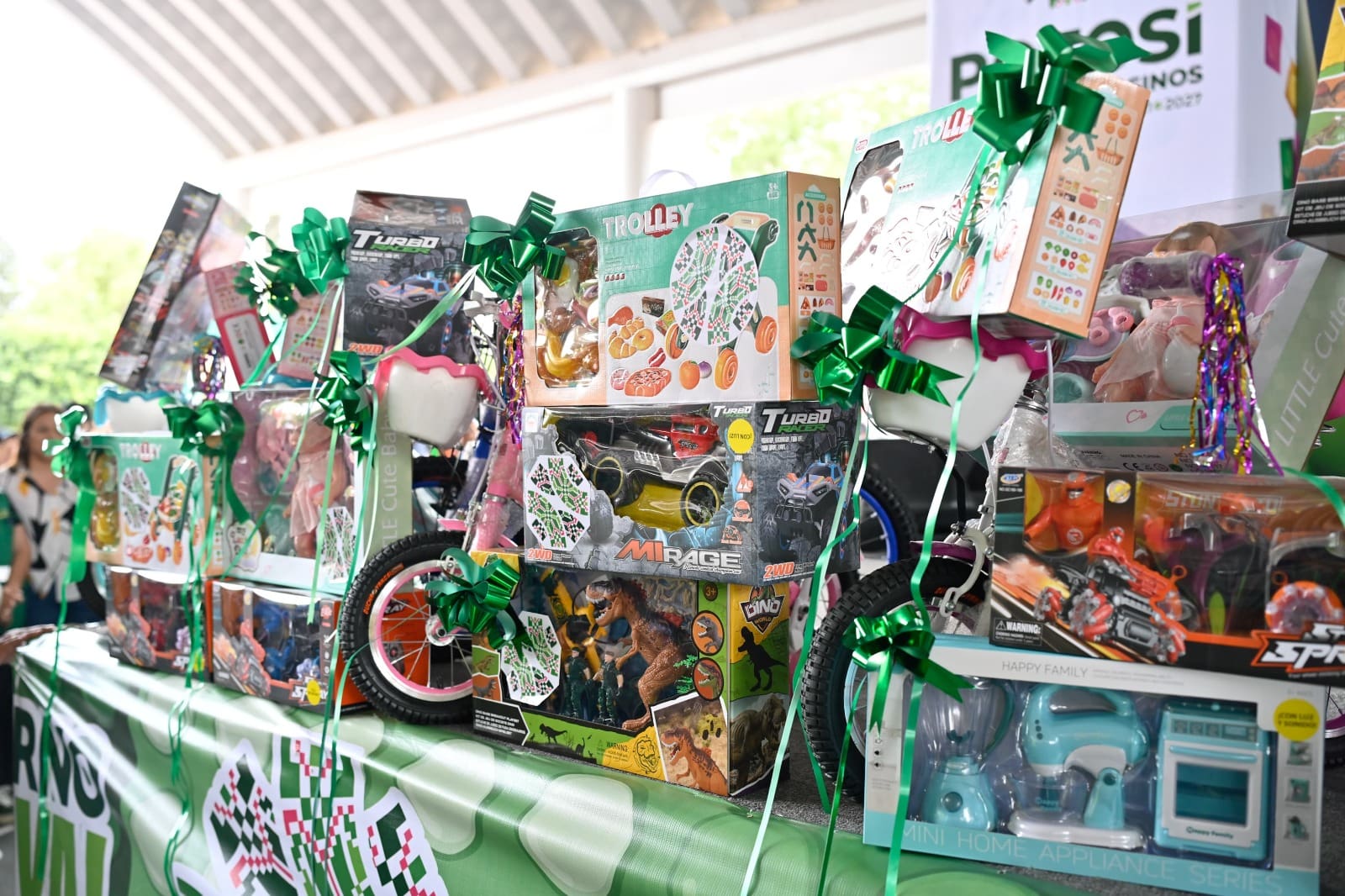 Posteriormente, invitó a las y los menores a subir al escenario para participar en bailes y la entrega de juguetes, y entregó bicicletas, muñecas, carritos, pelotas y balones que llenaron de emoción los rostros de todas y todos.