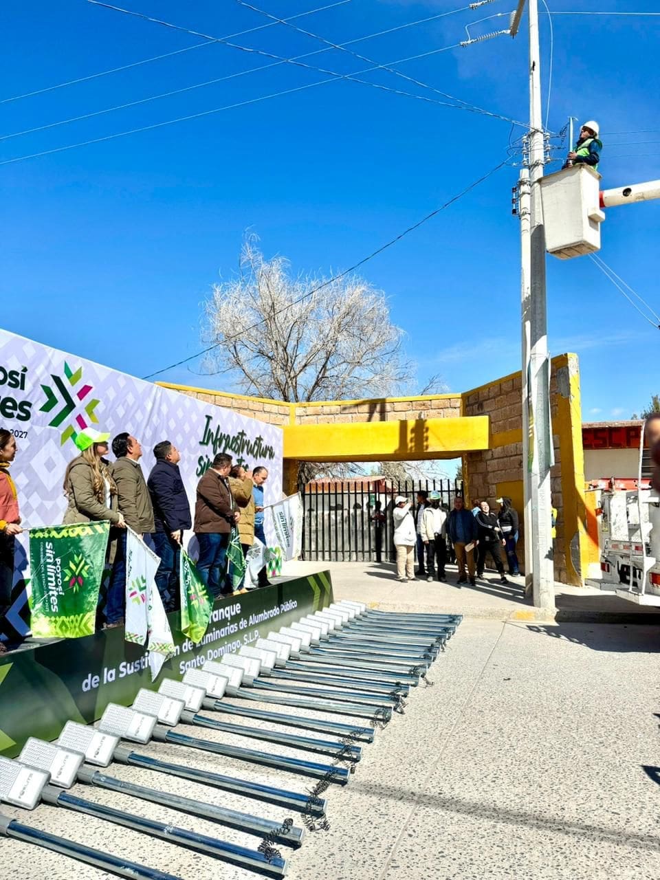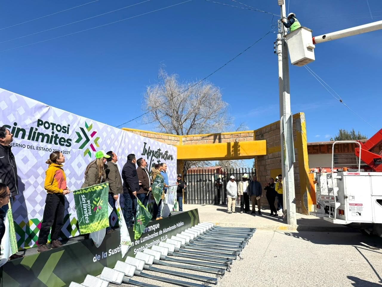 En una intensa gira de trabajo por el Altiplano potosino, el Gobernador de San Luis Potosí Ricardo Gallardo Cardona, inauguró y puso en marcha diversas obras de alto impacto para mejorar la calidad de vida de miles de habitantes de Santo Domingo y Charcas, con un apoyo sin límites en infraestructura y servicios que incluye alumbrado moderno, perforación de pozo profundo, pavimentaciones y una nueva unidad deportiva.