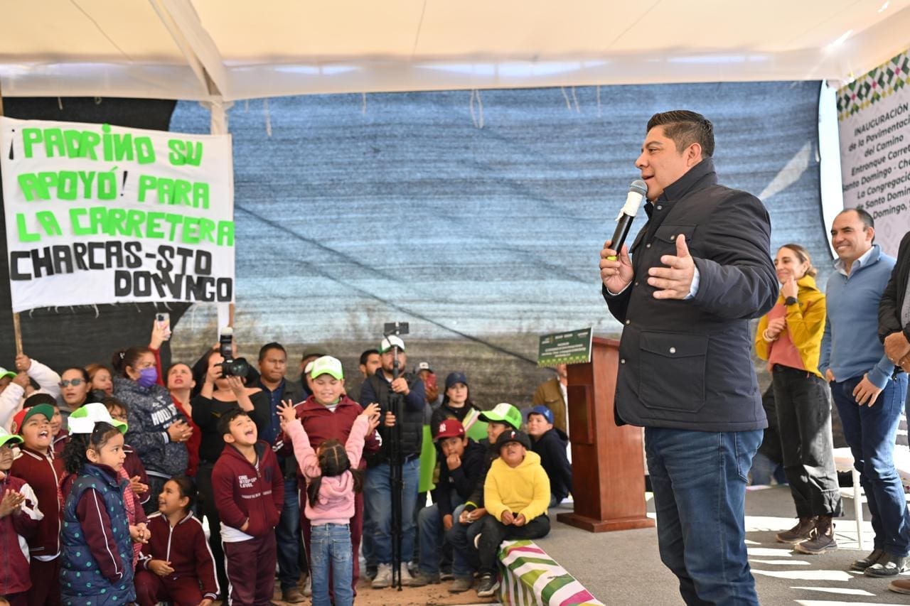 Más tarde, en un evento que congregó a cientos de familias, Ricardo Gallardo inauguró la carretera de la localidad La Congregación hasta el entronque con la carretera a Charcas, dónde destacó que este 2026 será el mejor año para San Luis Potosí, con más obras para la región, carreteras, obras de agua potable y ampliación de los apoyos de las becas alimentarias para que lleguen a todas las familias y con más productos.