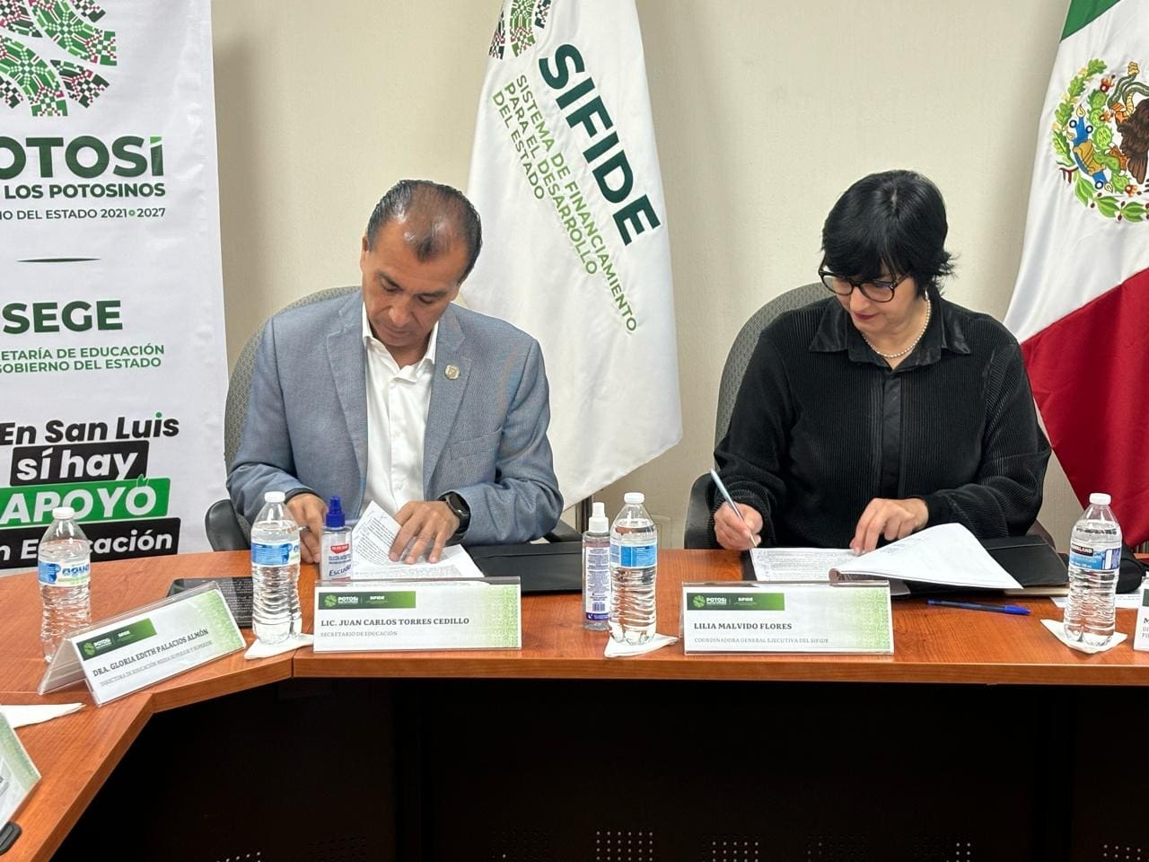Este 2024 más apoyo a las y los estudiantes de nivel superior y media superior, con programas de financiamiento que les permita seguir estudiando, titularse o iniciar estudios de maestría y posgrado, gracias al convenio firmado por la Secretaría de Educación del Gobierno del Estado (SEGE) y el Sistema de Financiamiento para el Desarrollo del Estado (Sifide), para acceder al programa “Beca-Crédito” y que en esta ocasión beneficiará a alumnas y alumnos de ocho escuelas públicas.