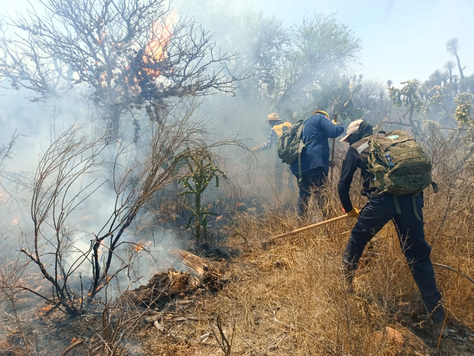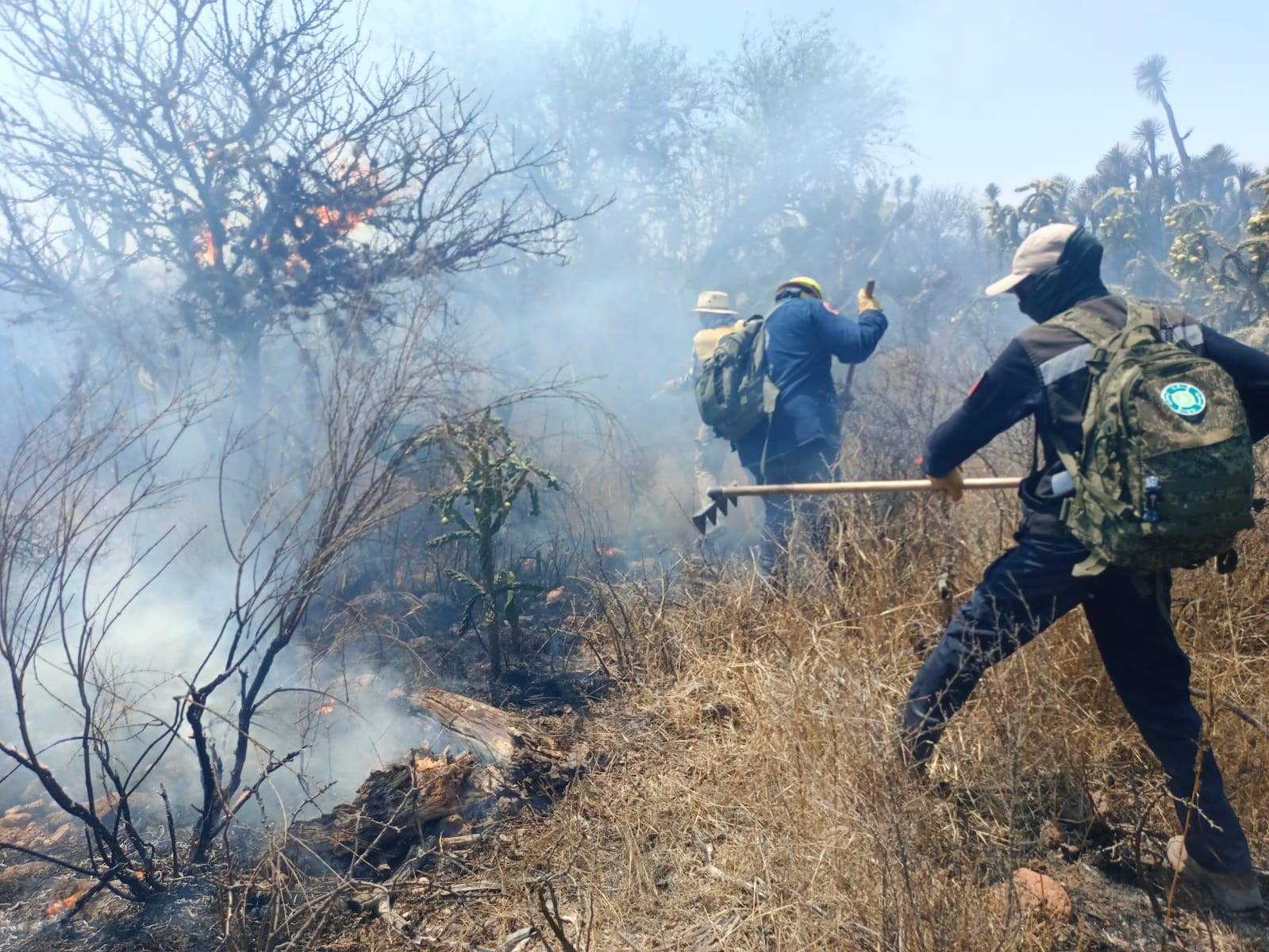 El director de la Coordinación Estatal de Protección civil, Mauricio Ordaz Flores, comentó que se trabaja en conjunto con la Comisión Nacional Forestal y la Secretaria de la Defensa Nacional para el combate, además de las autoridades municipales.