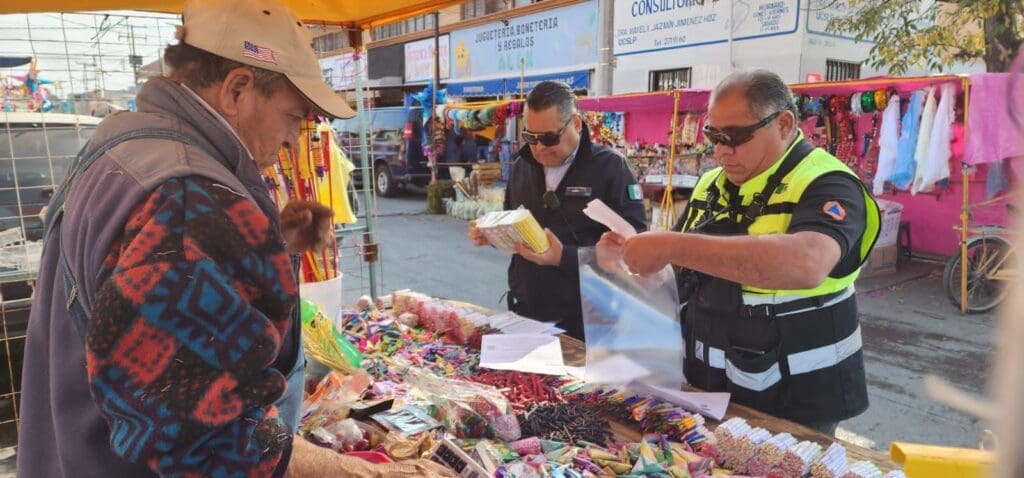 El director de la dependencia estatal, Mauricio Ordaz Flores, informó que, por instrucción del Gobernador Ricardo Gallardo Cardona, el personal de la dependencia estatal se distribuyó principalmente en las cuatro regiones, principalmente en la zona metropolitana del Estado, ya que es donde se instalan más puestos de venta de pirotecnia.