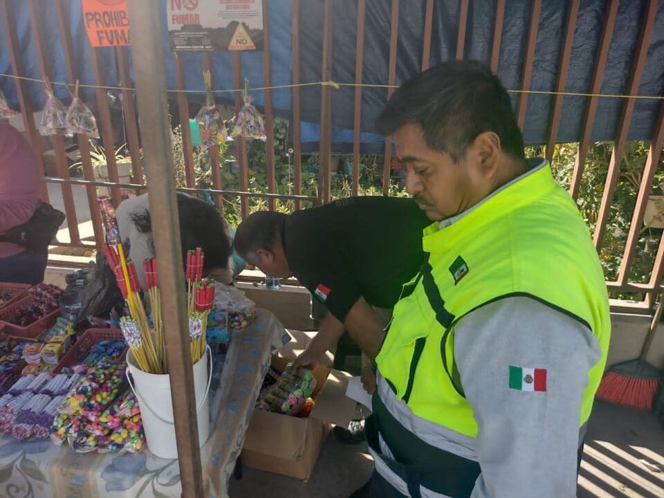Detalló que se revisaron 60 puestos, 50 tiendas y 33 dulcerías y se decomisaron 10 kilos de pirotecnia de luz, la cual se vendía en establecimientos que no contaban con los permisos para su venta.