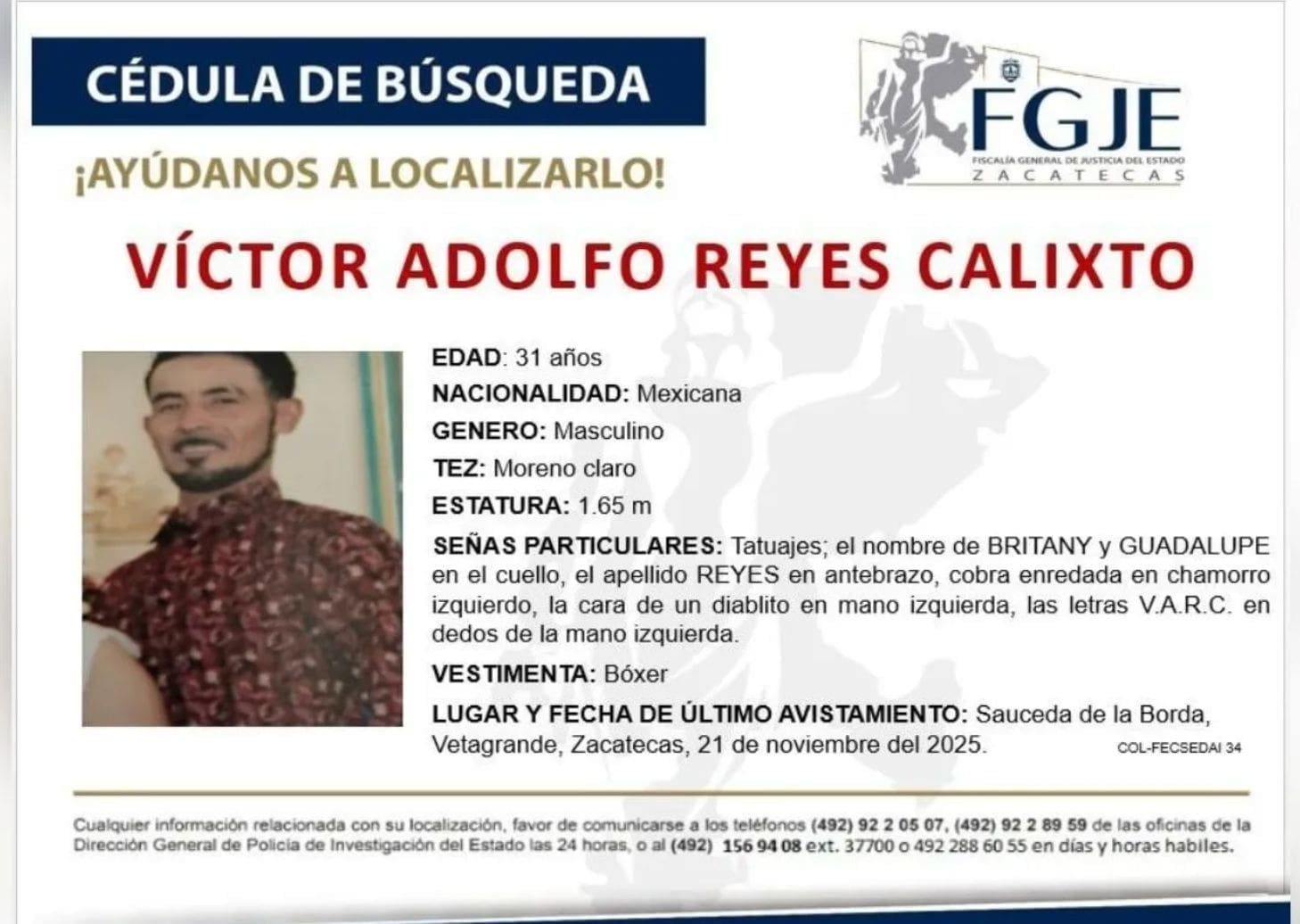 Ayer en pleno Día Internacional de la Eliminación de la Violencia contra las Mujeres, una joven de 15 años fue víctima de feminicidio a manos de su pareja sentimental, quien también asesinó a los padres de la menor dentro un domicilio en la comunidad San Jerónimo, municipio de Guadalupe, en el estado de Zacatecas.