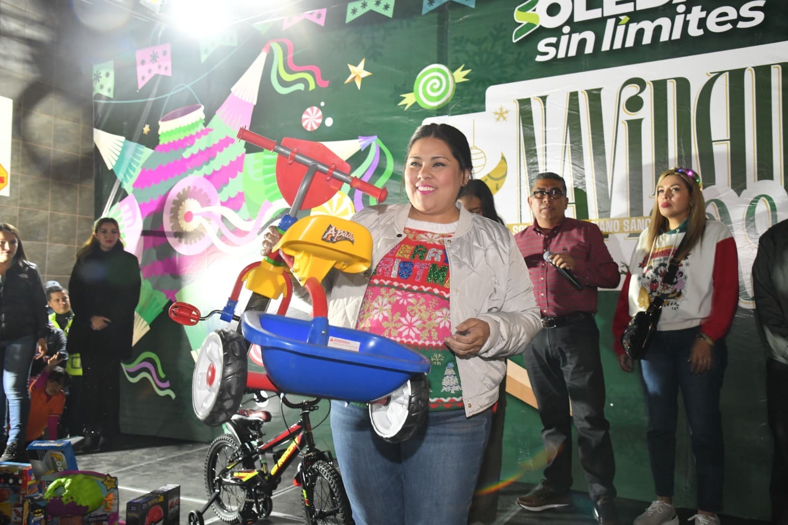 En cada una de las colonias, y rodeado de cientos de familias soledenses, el edil entregó juguetes a niñas y niños y cobertores a personas adultas mayores, como parte de una estrategia cercana a la gente que sigue las directrices de su administración.