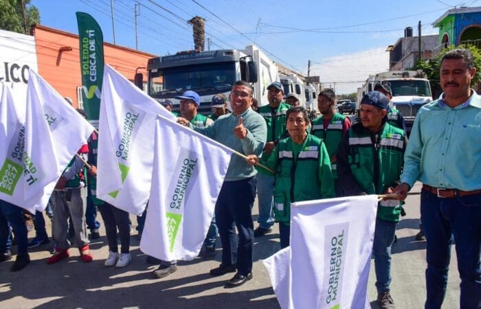 En un esfuerzo más por mejorar la eficiencia de los servicios públicos básicos en el municipio de Soledad de Graciano Sánchez, en específico el de recolección de residuos sólidos urbanos, el Alcalde Juan Manuel Navarro Muñiz entregó hoy tres nuevos vehículos al departamento de Aseo Público, con una inversión municipal de 8 millones 299 mil pesos, con el compromiso de que las rutas de recolección incrementen su frecuencia de hasta tres veces por semana.