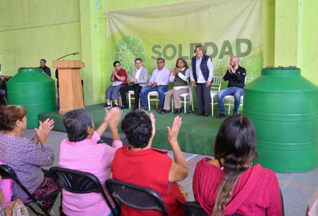 En apoyo a mejorar las condiciones de vida y brindar servicios básicos a las y los soledenses, y como parte del esfuerzo entre el Gobierno del Estado y el Ayuntamiento de Soledad de Graciano Sánchez, este lunes, la Alcaldesa Leonor Noyola Cervantes inició la entrega de cisternas a habitantes de la colonia San Felipe, acción que beneficiará el almacenamiento de agua potable.