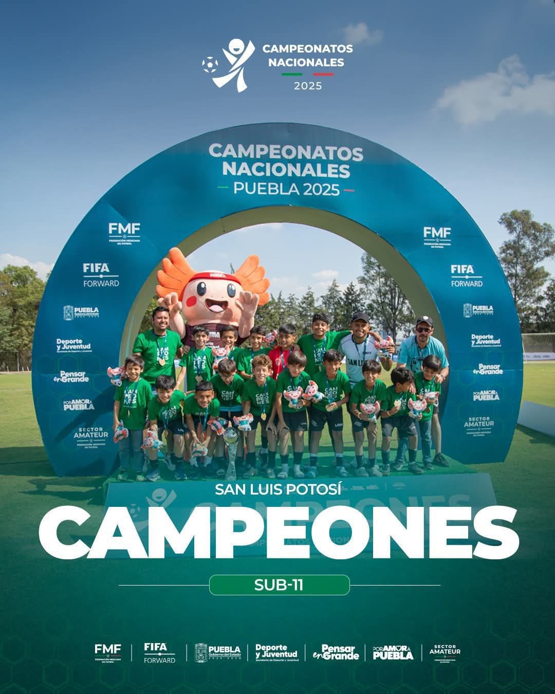 Con el impulso sin límites del Gobernador Ricardo Gallardo Cardona, a través del Instituto Potosino de Cultura Física y Deporte (Inpode), LOBOS FC se coronó en el Campeonato Nacional de Fútbol Sub-11, celebrado del 26 al 30 de noviembre en Puebla, reafirmando la hegemonía de San Luis Potosí en esta categoría. El certamen, avalado por la Federación Mexicana de Futbol mediante el Sector Amateur y con presencia de representantes de FIFA, reunió a los 32 campeones estatales del país, consolidándose como uno de los torneos formativos más exigentes del año.