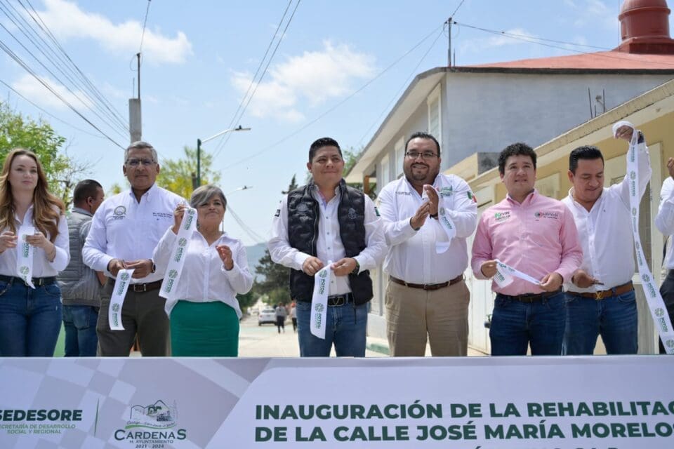 Cárdenas, San Luis Potosí.- Como parte de las obras y acciones de alto impacto social, que cambian la vida de la población, este martes el Gobernador de San Luis Potosí, Ricardo Gallardo Cardona, entregó en Cárdenas la obra de rehabilitación de la calle José María Morelos Pavón en la cabecera municipal, con una inversión de 4.5 millones de pesos en beneficio directo de tres mil 113 habitantes y 620 hogares.