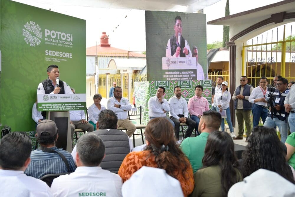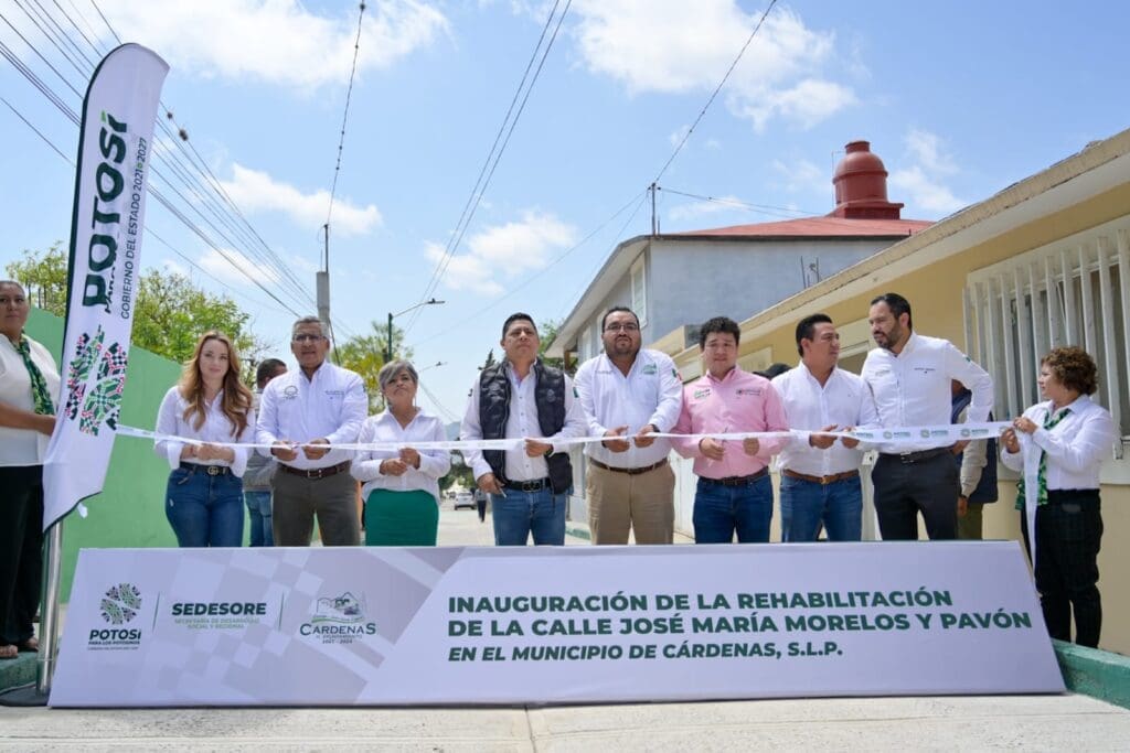 Cárdenas, San Luis Potosí.- Como parte de las obras y acciones de alto impacto social, que cambian la vida de la población, este martes el Gobernador de San Luis Potosí, Ricardo Gallardo Cardona, entregó en Cárdenas la obra de rehabilitación de la calle José María Morelos Pavón en la cabecera municipal, con una inversión de 4.5 millones de pesos en beneficio directo de tres mil 113 habitantes y 620 hogares.