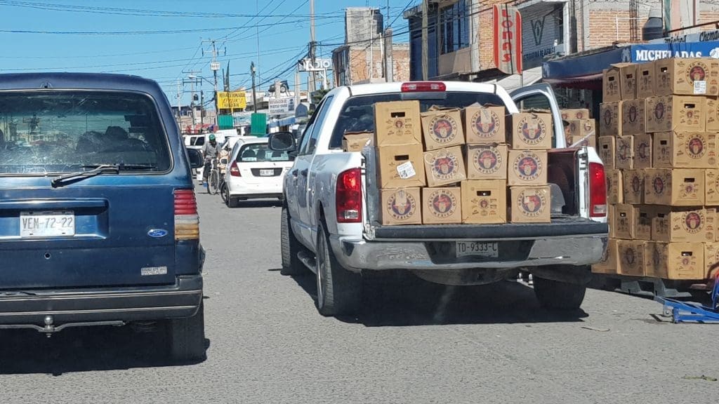 El caos vial se origina también, gracias a que conductores y comerciantes se estacionan en doble fila, restando un carril para la circulación de vehiculos que ya los esperan con la despensa, para iniciar la preparación de la comida para esta noche.