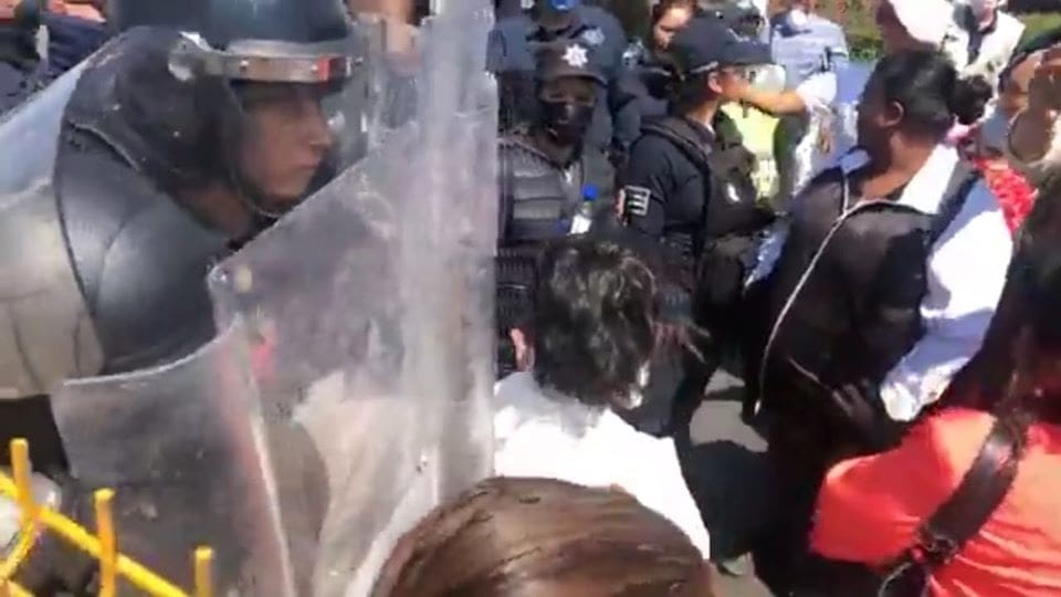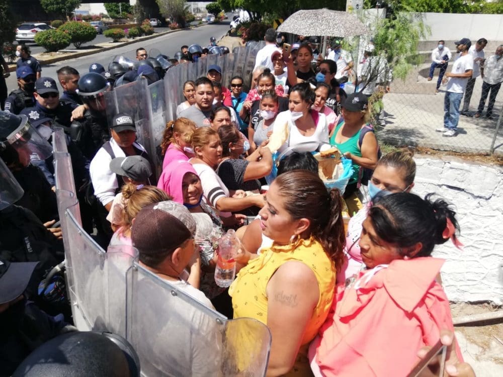 Los policías con escudos antimontines comenzaron a arrinconar a las mujeres y hombres que pedían una de dos cosas: que les dieran los apoyos que tanto les prometieron o que les permitan seguir trabajando en el tianguis, pues aparte de su plaza como vendedores no cuentan con ningún otro ingreso.